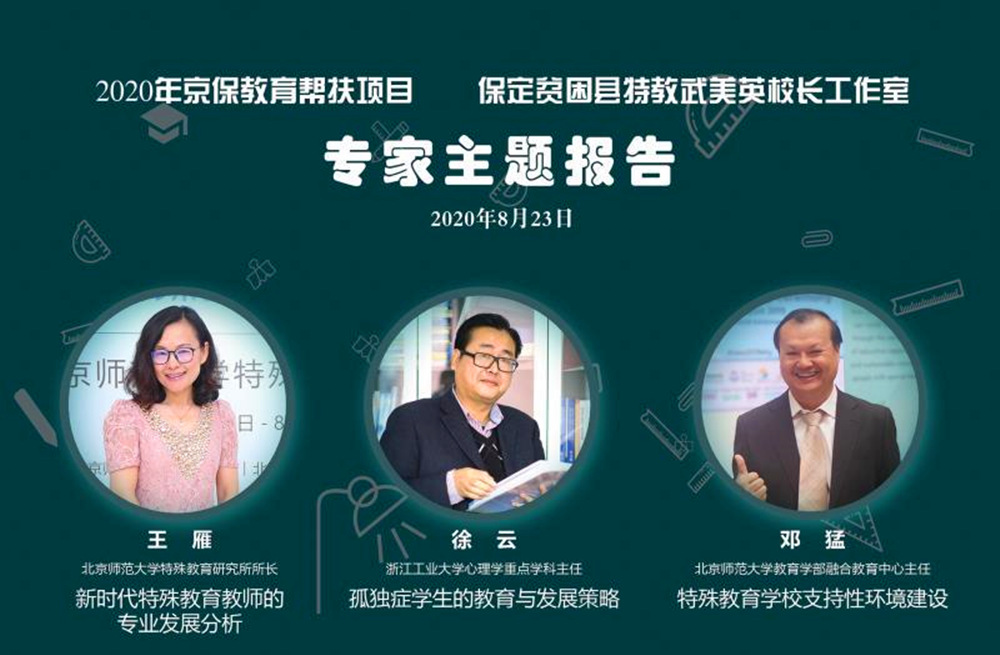保定市貧困縣特教武美英工作室按照研修方案要求,8月22-23日進入理論培訓環(huán)節(jié),本次培訓邀請到國家督學、中國教育學會副會長李天順、北京師范大學王雁教授、鄧猛教授、浙江工業(yè)大學徐云教授、山東師范大學張茂聰教授...