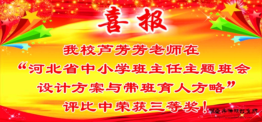 我校蘆芳芳老師在“河北省中小學(xué)班主任主題班會(huì)設(shè)計(jì)方案與帶班育人方略”評(píng)比中榮獲三等獎(jiǎng)! 蘆芳芳老師自2000年參加工作以來(lái),一直負(fù)責(zé)學(xué)校的共青團(tuán)和少先...