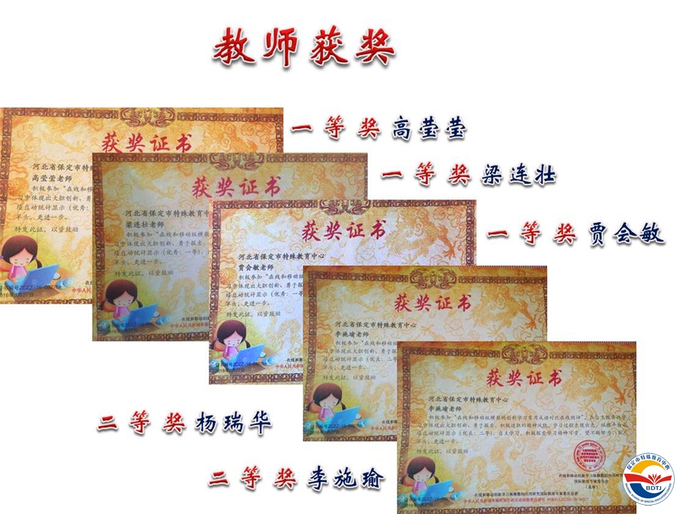 ? ? ??新學(xué)期伊始,保定市特殊教育中心又傳喜訊,學(xué)校師生獲得“在線和移動(dòng)創(chuàng)新學(xué)習(xí)縱橫數(shù)碼應(yīng)用研究國(guó)際聯(lián)席專家委員會(huì)組織的首屆在線成語測(cè)評(píng)比賽”的多項(xiàng)大獎(jiǎng)。梁連壯、高瑩瑩、賈慧敏三位老師獲得教師組一等...