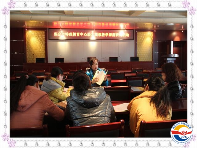 我校于2013年上半年分別在省級、市級立項“繪本閱讀提高啟聰、啟智部學生語言能力”的課題。上圖為張興坤老師給課題組成員進行繪本知識講座。