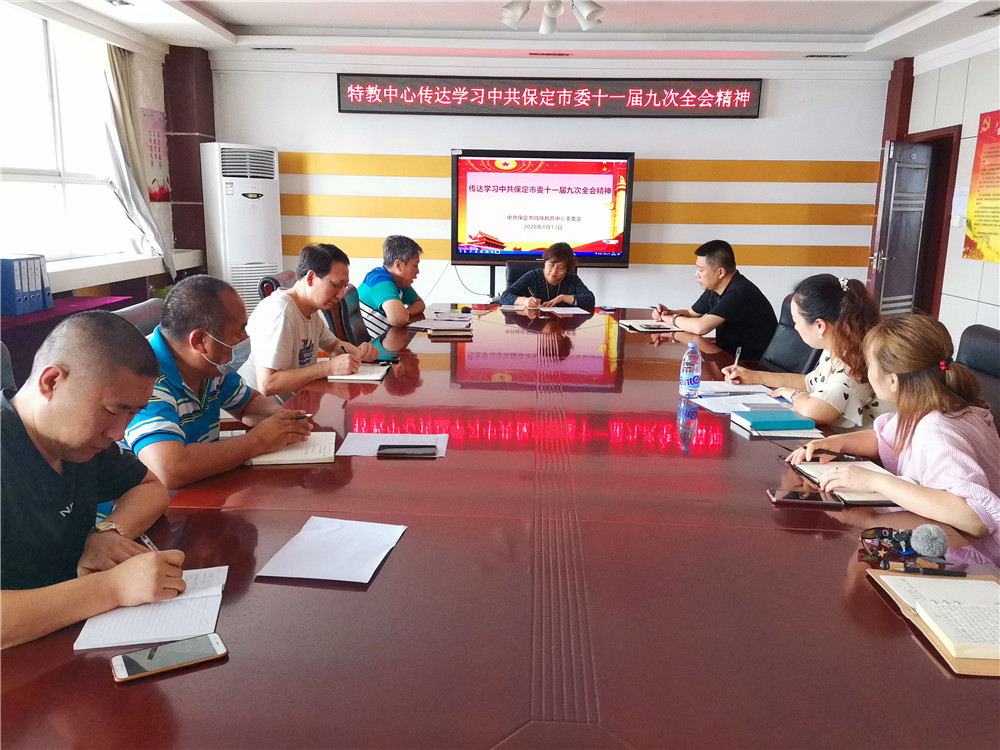 8月13日上午,保定市特殊教育中心在四樓會議室召開黨支部擴(kuò)大會議,傳達(dá)學(xué)習(xí)市委十一屆九次全會精神和市教育局黨組會(擴(kuò)大)會議精神。學(xué)校黨支部委員及全體中層干部參加了會議。黨支部書記、校長武美英主持會議并介...