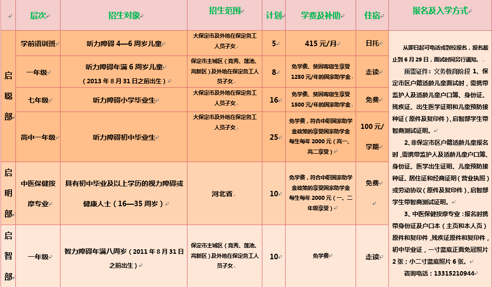一、學(xué)校概況 保定市特殊教育中心成立于2007年10月12日,由始建于1958年的原南市區(qū)保定市聾啞學(xué)校和始建于1987年的原北市區(qū)保定市育智學(xué)校合并而成,是集幼兒康復(fù)訓(xùn)練、智障、視障、聽(tīng)障義務(wù)教育、高中教育、職業(yè)教育...