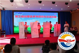 校舞蹈隊(duì)的熱舞《shock it》將閉幕式的文藝演出引向了高潮。啟明部楊彥博的笛子獨(dú)奏,代表今年剛成立民樂隊(duì)給我們帶來了驚喜。梁連壯老師現(xiàn)場揮毫潑墨,展示了我校藝術(shù)教師深厚的基本功。書法興趣小組的幾位學(xué)生不甘示弱,也將自己的作品進(jìn)行了展示。輪滑、羽毛球和足球興趣小組為大家?guī)砹擞跋裾故?,將日常?xùn)練和所取得的成績做出匯報(bào),他們艱苦的訓(xùn)練,精湛的技術(shù)和取得的成績令全校師生折服。乒乓球興趣小組在動(dòng)感十足的樂曲中現(xiàn)場進(jìn)行訓(xùn)練動(dòng)作展示,技驚四座,贏得了大家的陣陣掌聲!啟明部的劉文蕊和啟聰部同學(xué)們合作的手語歌伴舞《陽光總在風(fēng)雨后》,啟智部的崔晨雪歌伴舞《青春修煉手冊》,啟明部張博康同學(xué)的架子鼓獨(dú)奏《卡門序曲》,啟智部武琪的獨(dú)舞《一天到晚游泳的魚》和啟智部李彥浩同學(xué)的鋼琴獨(dú)奏—《秋日私語》,還有我校首屆職業(yè)技術(shù)大賽精彩回放,都彰顯了我校同學(xué)們的多才多藝,展示了我校1133-藝體課程的卓越成果!