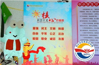 保定市特教中心結合學校實際,以“誠信”教育為核心、以愛國主義教育為主線、以傳統(tǒng)文化進校園為抓手、以法制安全教育為重心、以心理健康教育為基點,強力推進文明校園創(chuàng)建活動,有效開展文明城市創(chuàng)建工作。不放棄每一個孩子,殘健同行,讓社會主義核心價值觀在每個特教人心中扎根,“中國夢”讓弱苗健康成長……踐行社會主義核心價值觀,特教人在路上!