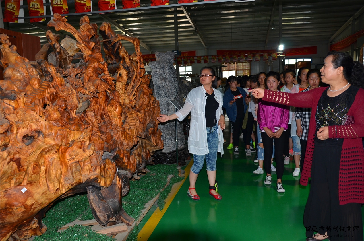 參觀完天石畫院展廳,同學(xué)們又乘車前往榮毅集團(tuán)的文化產(chǎn)業(yè)園,去參觀其中的京南藝術(shù)區(qū)展館。展館中陳列有許多根雕作品,由于平時(shí)鮮有機(jī)會(huì)接觸到如此優(yōu)秀的藝術(shù)作品,同學(xué)們紛紛駐足觀看,目不轉(zhuǎn)睛。隨后,同學(xué)們還有幸參觀了畫家工作室,其中重點(diǎn)參觀了著名畫家王灝先生的繪畫工作室。王灝先生是河北省中國(guó)畫研究會(huì)理事、保定市青年美術(shù)家協(xié)會(huì)副主席、天石畫院院長(zhǎng),河北天石美術(shù)館館長(zhǎng)??吹叫哪恐芯把龅漠嫾壹八墓ぷ魇?,同學(xué)們激動(dòng)萬(wàn)分,帶著崇拜的心情認(rèn)真的參觀學(xué)習(xí)起來,無數(shù)唯美的畫面讓孩子們似乎有了更多的感悟,由此心生向往和憧憬之情。