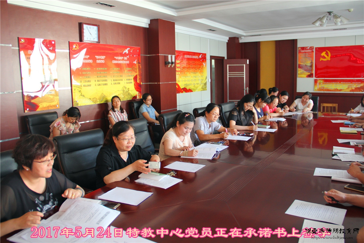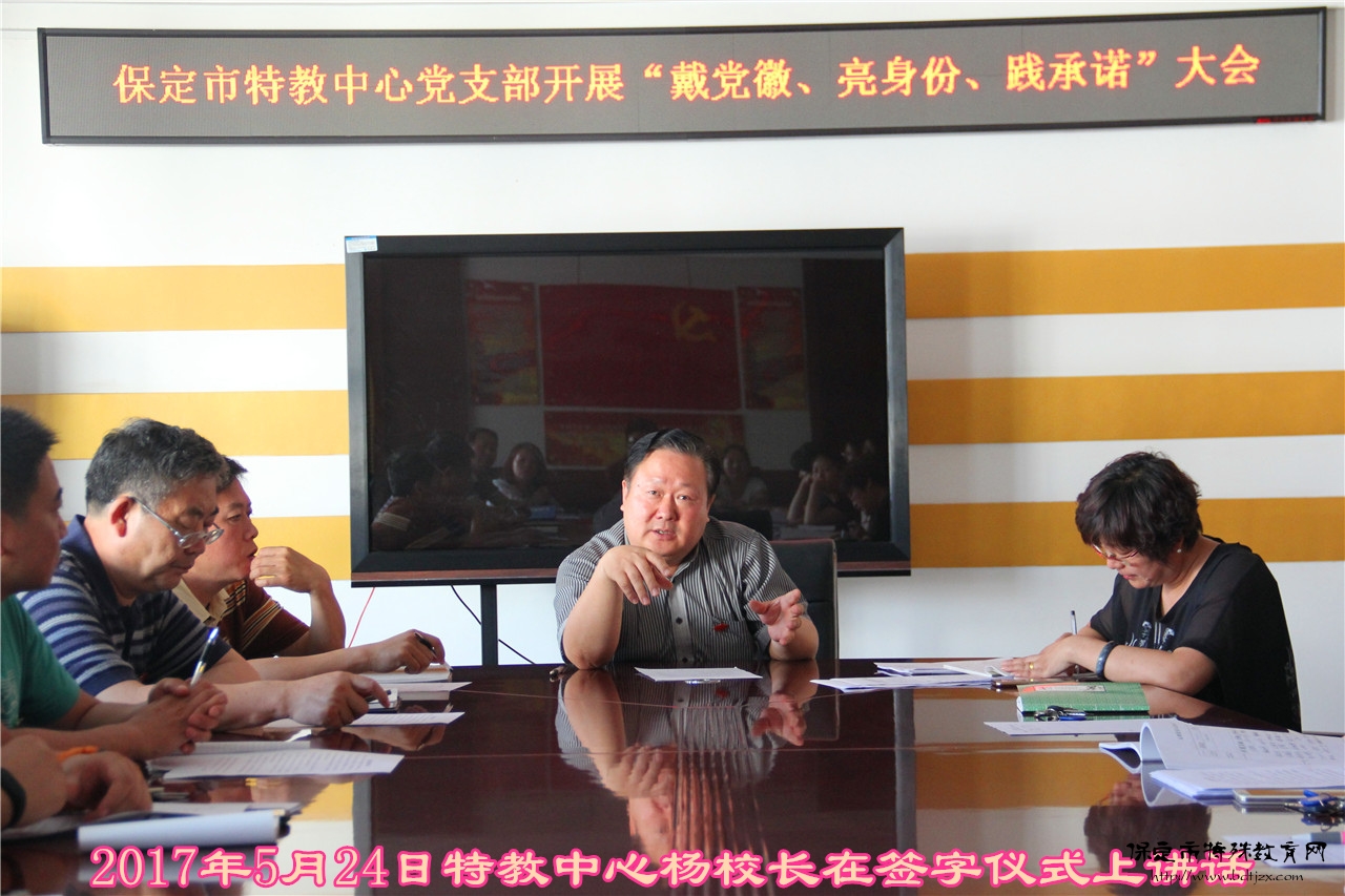 五月,攜一縷淺夏的芬芳,凝一脂冰清玉潔的清夢,連同五月特有的濃郁,隨風越過枝頭,停泊在保定市特教中心溫馨的校園,這里正在舉行“戴黨徽、亮身份、踐承諾”的簽字儀式。