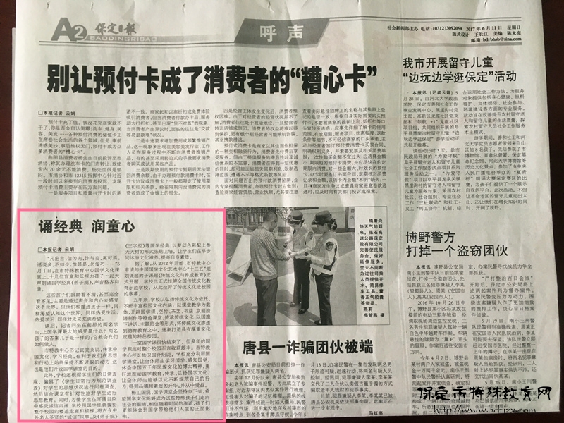 保定日?qǐng)?bào)報(bào)道我校國(guó)學(xué)課情況