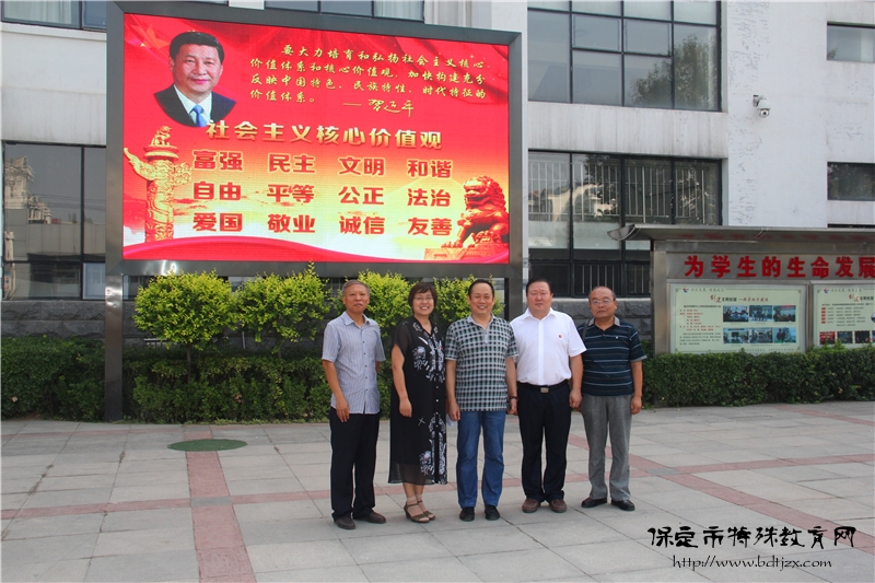 9月8日上午九時,保定市教育局副縣級督學(xué)陳志會、督導(dǎo)室主任楊光、老干部處主任王國亮一行對保定市特教中心創(chuàng)城工作進(jìn)行督導(dǎo)檢查,在學(xué)校領(lǐng)導(dǎo)楊衛(wèi)國校長、武美英書記、曹挺副校長的陪同下查看了校園創(chuàng)城文化營造情況,重點(diǎn)檢查了校史館、心理咨詢室、宣泄室、音樂治療室、多感官教室、低視力教室、攝影室、雕刻室、化妝室等專業(yè)教室,楊校長就學(xué)校創(chuàng)城工作的準(zhǔn)備情況向督導(dǎo)組進(jìn)行了匯報。