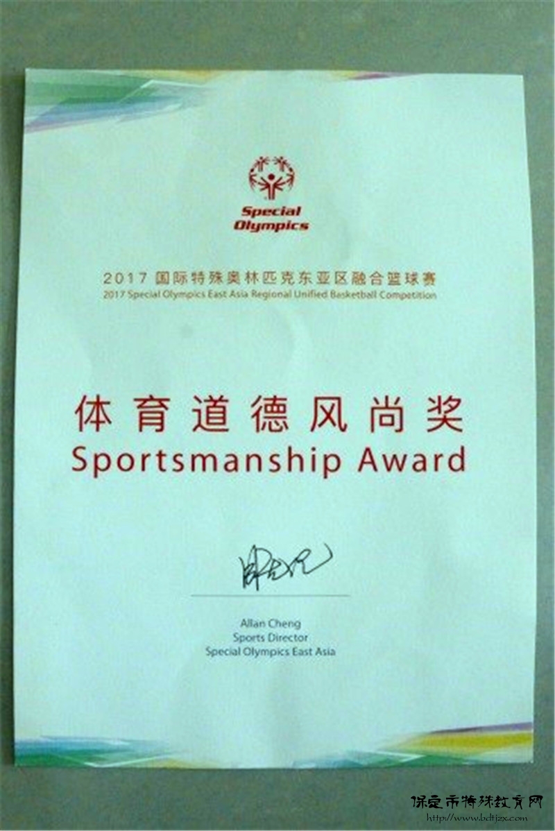 同時,代表隊獲得還集體道德風(fēng)尚獎!我校又一次為河北省、為家鄉(xiāng)贏得了榮譽(yù),譜寫了保定市特殊教育中心嶄新的篇章!