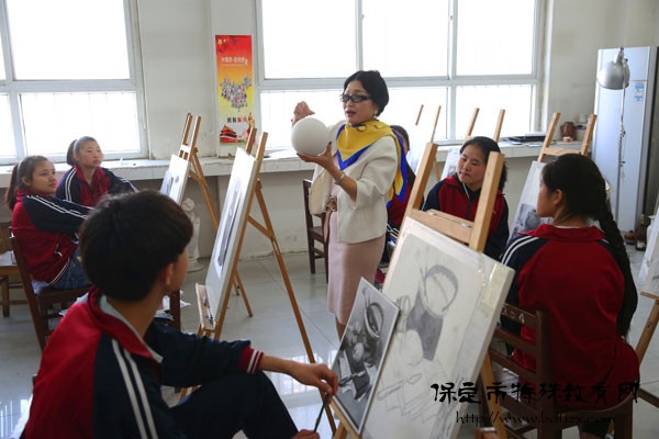 “這里的線條要畫暗一些,這個(gè)瓶口要畫寬一些,這里的顏色關(guān)系要拉大……”曹瑞蒲老師一邊打著手語,一邊用語言重復(fù)著。不一會(huì)兒,一幅幅栩栩如生的素描畫躍然紙上。4月16日,這堂課美術(shù)課的主角,正是保定市特教中心九年級(jí)的15名聾啞學(xué)生和曹瑞蒲老師。