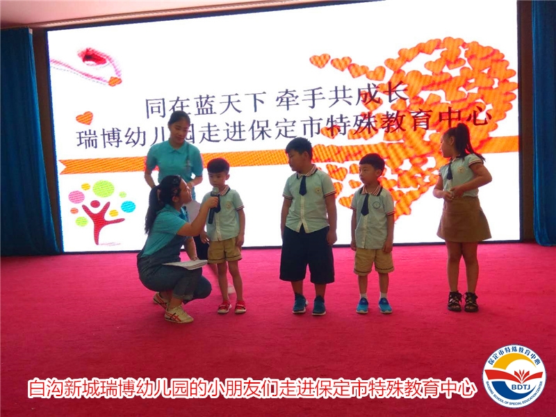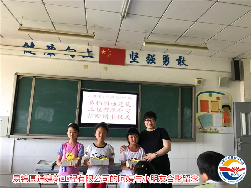 為了過(guò)一個(gè)和諧而有意義的兒童節(jié),我校特意將啟聰、啟智、啟明三部的小朋友們集合在一起觀看了一部?jī)和娪?,這部電影的特殊之處就在于它既有字幕又有聲音還有旁白,兼顧到我校的三類學(xué)生,使他們感受到同齡孩子都能感受到的歡樂(lè)。六一兒童節(jié)到來(lái)之際,保定市保定市中茂能源有限公司的叔叔阿姨們給孩子們帶來(lái)了新鮮可口的水果,新疆易錦圓通建筑工程有限公司的叔叔阿姨們給孩子們帶來(lái)了繪本圖書,保定白溝新城瑞博幼兒園的小朋友們給孩子們帶來(lái)了小禮物和義賣的善款......