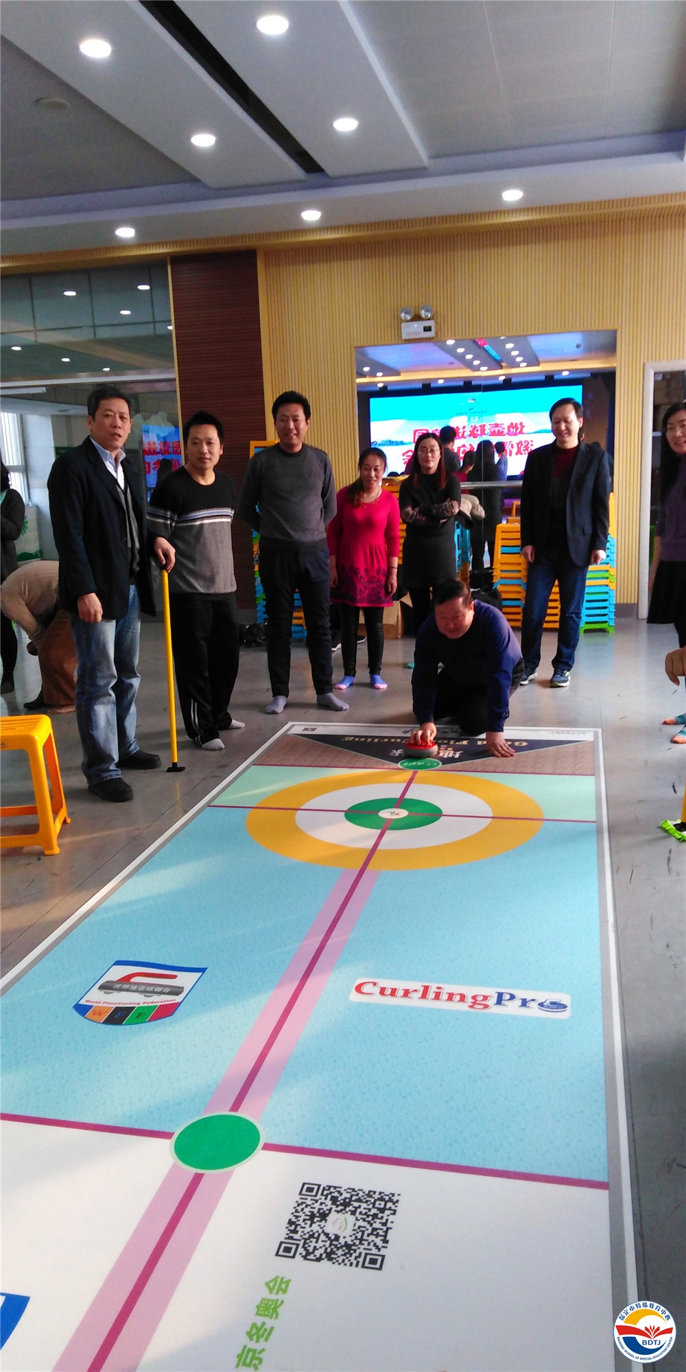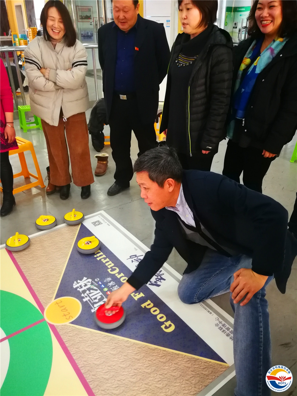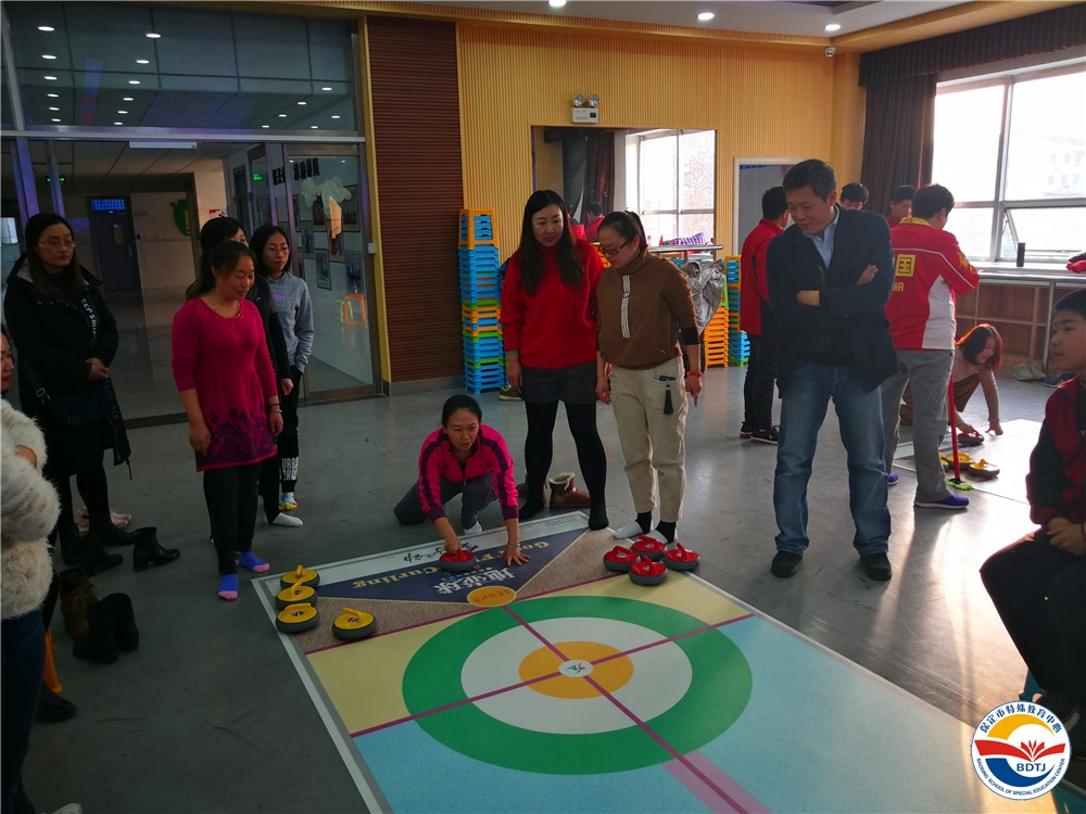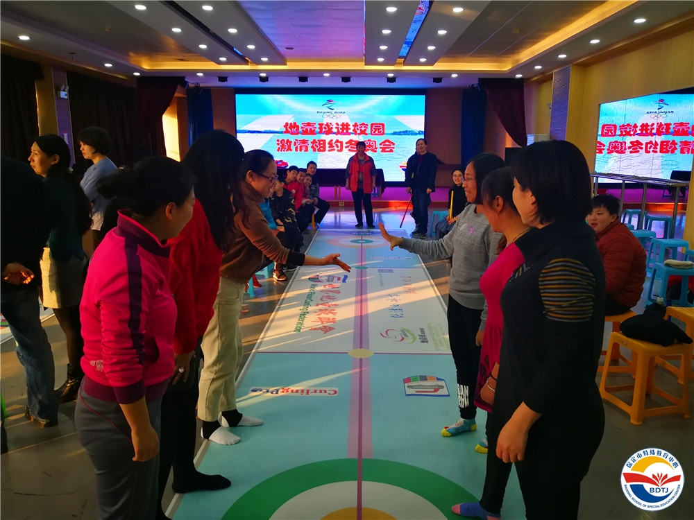 2019新年的鐘聲剛過,隆冬時(shí)節(jié)的寒冷氣息,絲毫沒有阻擋保定市特教中心大力推進(jìn)體育運(yùn)動(dòng)的腳步。為促進(jìn)殘障學(xué)生身心健康成長(zhǎng),營(yíng)造師生積極參與體驗(yàn)2022年第24屆冬奧會(huì)的濃厚氛圍,學(xué)校攜手由冬奧宣講團(tuán)成員、前殘奧冠軍劉玉坤教授帶領(lǐng)的全國(guó)旱地冰壺志愿者團(tuán)隊(duì),于2019年1月4日下午,在校三樓多功能廳,組織開展“地壺球”培訓(xùn)。這是保定市首次開展“地壺球運(yùn)動(dòng)進(jìn)校園”活動(dòng)!冬奧會(huì)宣講團(tuán)成員、地壺球國(guó)家級(jí)裁判劉玉坤;北京市海淀區(qū)殘疾人聯(lián)合會(huì)兼北京市殘疾人體協(xié)理事龐京娜;保定市特教中心校長(zhǎng)楊衛(wèi)國(guó)、副校長(zhǎng)曹挺、唐縣特教學(xué)校校長(zhǎng)王永生出席了此次活動(dòng)。學(xué)校20余名教師代表及啟聰、啟智部學(xué)生熱情高漲的參加了培訓(xùn)。