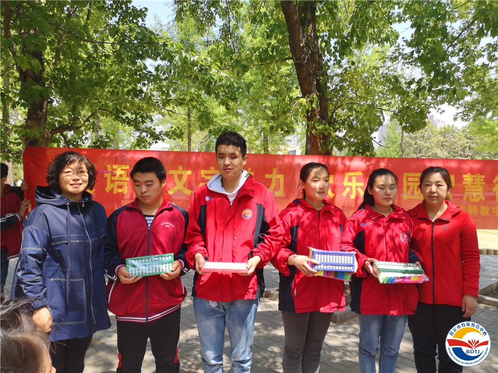 啟明部師生則充分利用所學語文知識,與游戲結合起來——“胡蘿卜蹲”、“詞語接龍”和“詩歌大比拼”,雖然他們看不見,但他們用知識來游戲,體會著語言文字帶給他們的樂趣,孩子們踴躍的發(fā)言、積極的參與,讓整個活動充滿了生趣。