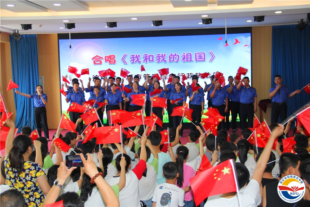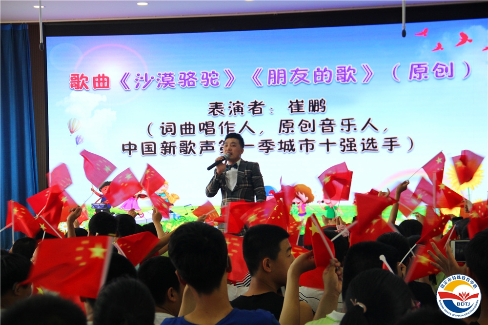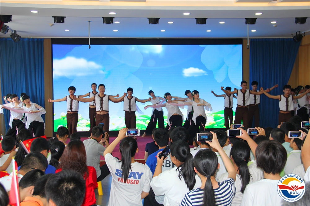 整場(chǎng)演出歡樂(lè)喜慶、別具一格,彰顯了向真、向善、向美、向上的魅力。動(dòng)感的音樂(lè)、優(yōu)美的舞蹈、喜悅的笑臉、激動(dòng)的心情,整個(gè)活動(dòng)現(xiàn)場(chǎng)歡呼聲此起彼伏,師生隨著優(yōu)美的旋律揮動(dòng)著手中的國(guó)旗,主持人激昂的畫(huà)外音,催促著人們邁進(jìn)70華誕的腳步,激發(fā)了全體師生的愛(ài)國(guó)熱情!歌聲和歡笑充斥著校園,整個(gè)校園籠罩在快樂(lè)祥和的節(jié)日氣氛中,讓特殊孩子在節(jié)日中感受到濃濃的愛(ài)意,孩子們稚嫩的臉龐上洋溢著歡樂(lè)和童真,笑容如鮮花般盛放,享受著同在藍(lán)天下快樂(lè)與幸福!
