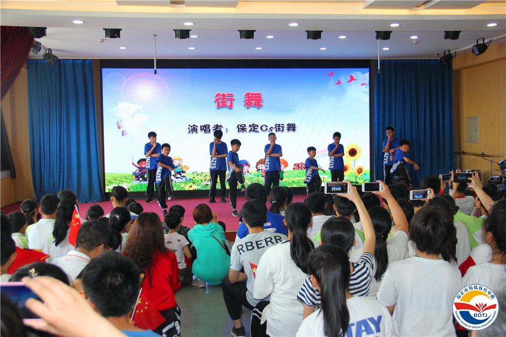 演出從激昂的管樂(lè)合奏《我們是共產(chǎn)主義接班人》開(kāi)始。隨后,先鋒辦事處龍泉社區(qū)舞蹈隊(duì)和市瑞紅舞蹈隊(duì)分別為孩子們帶來(lái)精彩的舞蹈;中國(guó)新歌聲第一季城市十強(qiáng)選手崔鵬激情獻(xiàn)唱《沙漠駱駝》和原創(chuàng)歌曲《朋友的歌》;保定市十七中學(xué)1712班王翰宇、趙倬兩位同學(xué)朗誦《中國(guó)少年說(shuō)》;保定C5街舞為全體師生帶來(lái)活力四射的街舞表演;河北省保定雜技魔術(shù)家協(xié)會(huì)會(huì)員耿云松帶來(lái)魔術(shù)《鴿舞》、《夢(mèng)幻魔術(shù)組合》,帶給孩子們驚奇和驚喜;佳韻音樂(lè)藝術(shù)學(xué)校上演悠揚(yáng)的古箏演奏;競(jìng)秀區(qū)城市管理綜合行政執(zhí)法局則為大家獻(xiàn)唱了《不忘初心》及《我和我的祖國(guó)》兩首動(dòng)情而充滿正能量的歌曲。我校學(xué)生的節(jié)目既有歌曲《你是我的眼》《葫蘆娃》、手語(yǔ)表演《感恩的心》和幼兒舞蹈,也有薩克斯獨(dú)奏《我只在乎你》、雙人爵士鼓表演《瑤族舞曲》和笛子二重奏《牧場(chǎng)歡歌》等,學(xué)?!叭粘鲋狻彼囆g(shù)團(tuán)的大型音樂(lè)舞蹈《茉莉花季》將整個(gè)演出推向了高潮。動(dòng)聽(tīng)的歌聲唱出我校學(xué)子心里的喜悅,優(yōu)美的舞姿舞出學(xué)子心中的熱情洋溢……一個(gè)個(gè)節(jié)目無(wú)不表達(dá)出節(jié)日的快樂(lè)。同時(shí),在活動(dòng)最后舉行了捐贈(zèng)儀式,保定聯(lián)通中山營(yíng)業(yè)廳將20臺(tái)小度音箱捐贈(zèng)給學(xué)校,社會(huì)愛(ài)心人士為學(xué)生帶來(lái)了精美的禮物,現(xiàn)場(chǎng)讓學(xué)生品嘗美味蛋糕……