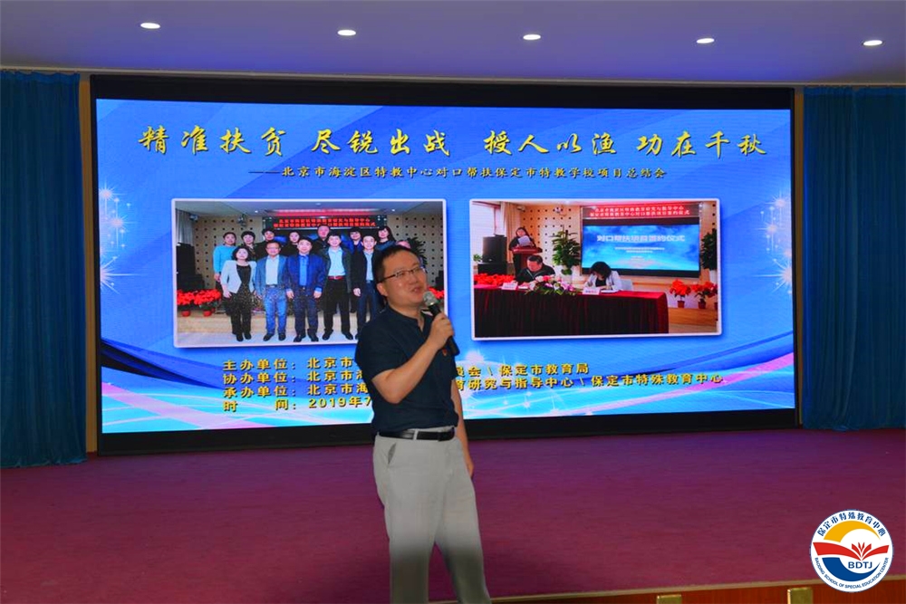 據(jù)悉,項(xiàng)目是響應(yīng)黨的十九大報(bào)告“辦好特殊教育”,貫徹落實(shí)黨中央精準(zhǔn)扶貧項(xiàng)目的重要工作,旨在借京津冀協(xié)同發(fā)展東風(fēng),積極為特殊兒童謀福利,共同推進(jìn)特殊教育領(lǐng)域在京津冀教育協(xié)同發(fā)展中的有效落實(shí)。項(xiàng)目得到京、保兩地領(lǐng)導(dǎo)高度重視,積極推進(jìn),從2018年3月啟動(dòng),歷時(shí)一年三個(gè)月,由保定市特殊教育中心牽頭,北京市海淀區(qū)特殊教育指導(dǎo)中心對(duì)口幫扶保定市特殊教育中心及淶水、淶源、易縣、唐縣、順平、阜平、曲陽(yáng)、望都八個(gè)縣特殊教育學(xué)校,培訓(xùn)教師100余人次,參訓(xùn)教師多達(dá)2000余人次,項(xiàng)目雙方從研學(xué)幫扶、自閉癥康復(fù)幫扶、師資隊(duì)伍建設(shè)幫扶和教學(xué)管理幫扶四個(gè)方面全面對(duì)接。