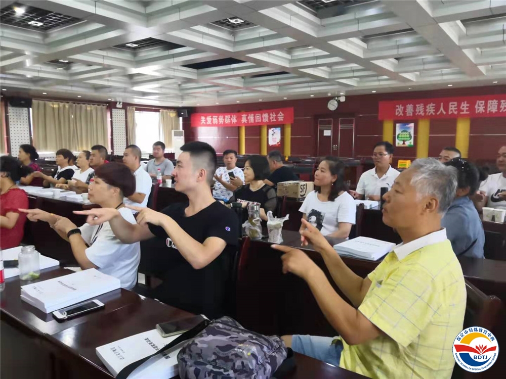7 月 29日,由保定市殘疾人聯(lián)合會(huì)和保定市教育局主辦,保定市特殊教育中心承辦的國家通用手語培訓(xùn),在保定市特殊教育中心五樓會(huì)議室舉行開班儀式,社會(huì)各界聽障人士代表共40人參加培訓(xùn)。