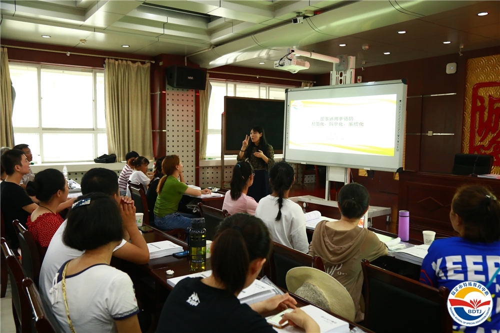 自2018年7月1日起,《國家通用手語常用詞表》作為語言文字規(guī)范正式實(shí)施?!秶彝ㄓ檬终Z常用詞表》規(guī)定了通用手語常用詞匯的規(guī)范動(dòng)作,是國家通用語言的豐富和補(bǔ)充,是對聽力殘疾人使用手語語言權(quán)利的保障。從2018年7月新詞表和方案實(shí)施以來,保定市特殊教育中心高度重視,陸續(xù)派出10余名優(yōu)秀教師赴北京參加全國集訓(xùn),掌握最新知識(shí)后,每周二周三在本校對聾、盲任課教師進(jìn)行“二次培訓(xùn)”,盡快的將新詞表在教學(xué)中運(yùn)用,讓學(xué)生受益。
