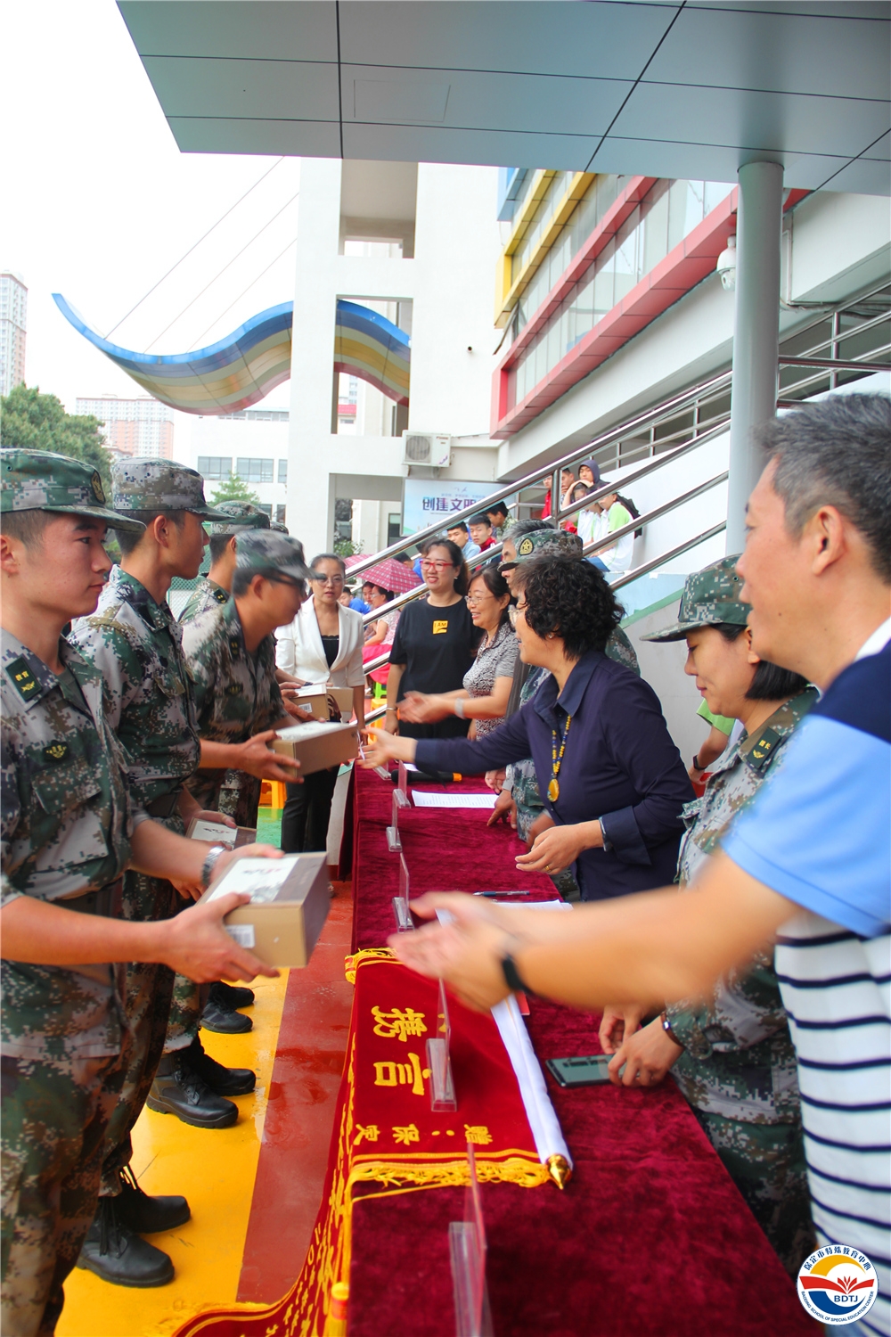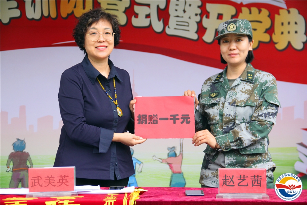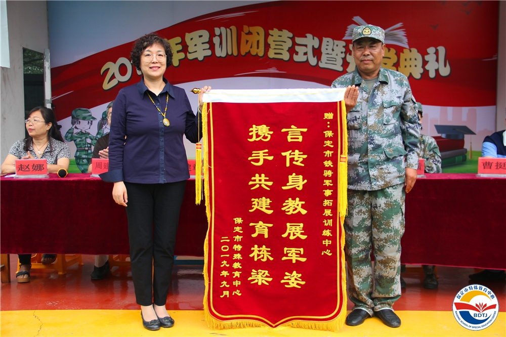 特教的天空總是那么湛藍,孩子們的笑臉總是那么燦爛,為什么?因為有你!是我身邊的你總在我需要幫助的時候施以援手,陪我一起歡樂一起成長;是站在三尺講臺上的你教我知識,育我做人;是素不相識的你給我關愛,讓我心中常駐陽光......保定市鐵騎軍事拓展訓練中心不僅給同學們帶來了過硬的軍事本領,還帶來了1000元的助力金,助力同學們努力學習,健康成長,特教中心也為鐵騎軍事拓展訓練中心送上錦旗、銅牌,還為不辭辛勞的教官們準備了紀念品,同學們更是用優(yōu)美的舞蹈感恩教官......