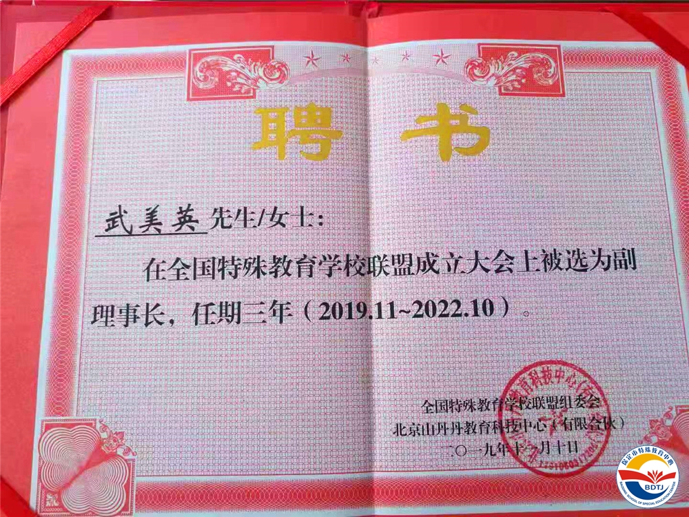 此次會(huì)議我校武美英校長(zhǎng)被聘為“全國(guó)特殊教育學(xué)校聯(lián)盟副理事長(zhǎng)”這是我校的一大幸事,為我校向其它先進(jìn)學(xué)校學(xué)習(xí)搭建了一個(gè)良好的平臺(tái),學(xué)校將會(huì)以此為契機(jī),學(xué)習(xí)發(fā)達(dá)地區(qū)的辦學(xué)理念,共享現(xiàn)代化教育資源,結(jié)合學(xué)校實(shí)際科學(xué)謀劃學(xué)校辦學(xué)新思路、新發(fā)展,在融合教育、送教上門(mén)、隨班就讀等方面進(jìn)行探索研究,力爭(zhēng)有新突破,將學(xué)校辦出特色,辦出水平。