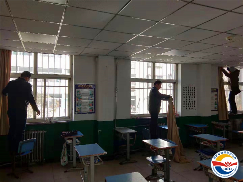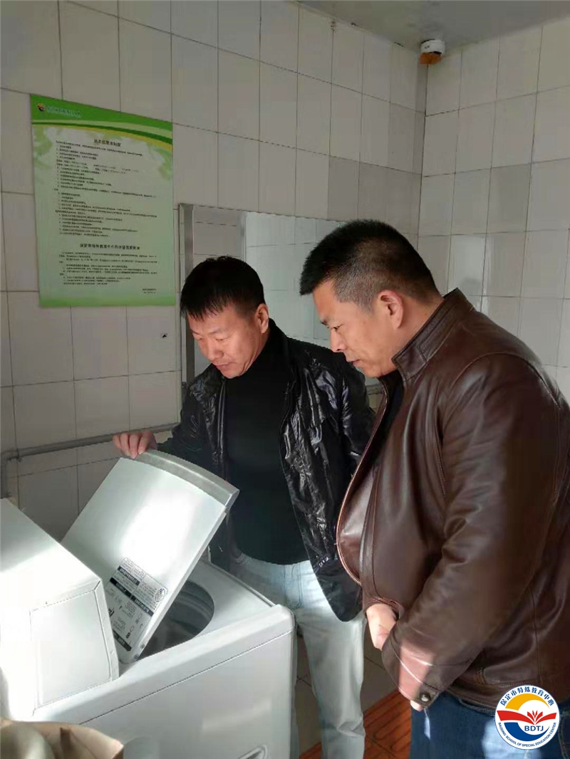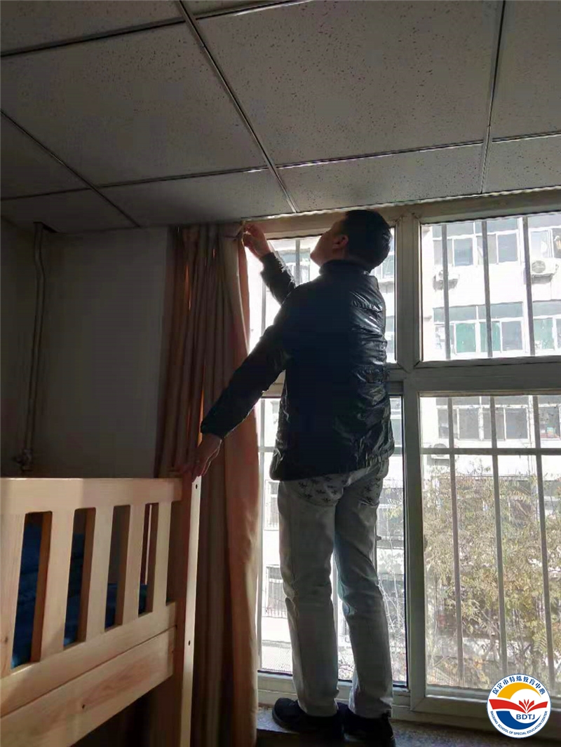 會(huì)議結(jié)束后,宋君主任帶領(lǐng)校產(chǎn)辦支部成員到學(xué)生宿舍區(qū)進(jìn)行志愿服務(wù)。大家摘下宿舍窗簾,認(rèn)真的為學(xué)生們清洗,用實(shí)際行動(dòng)關(guān)愛(ài)特殊兒童。