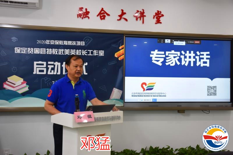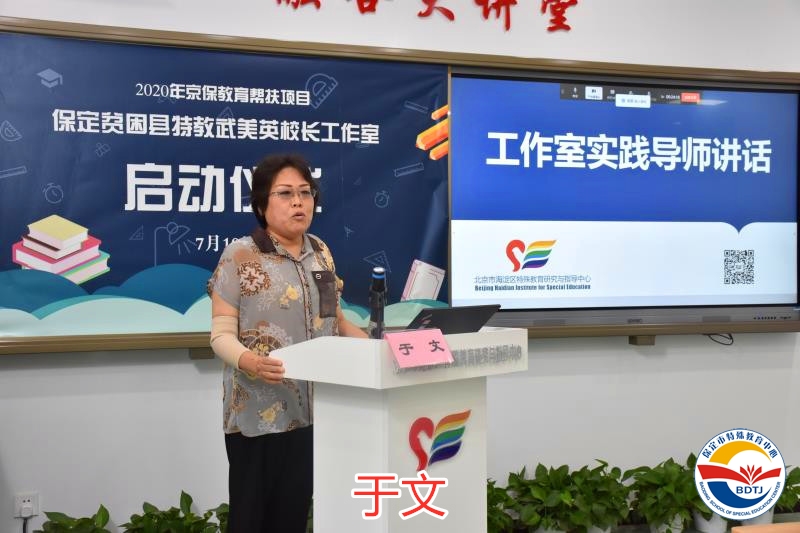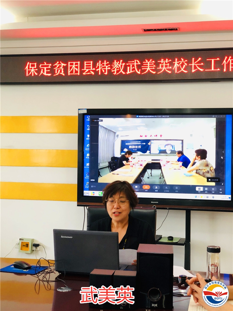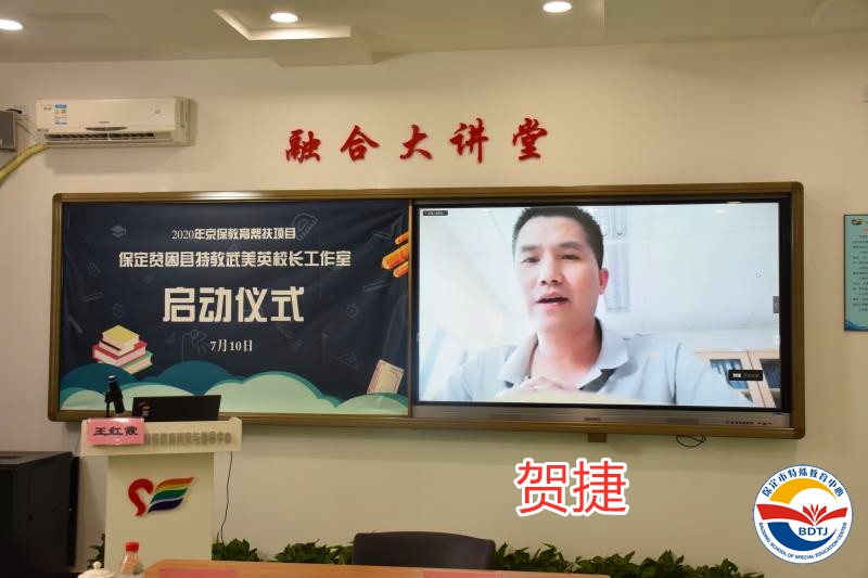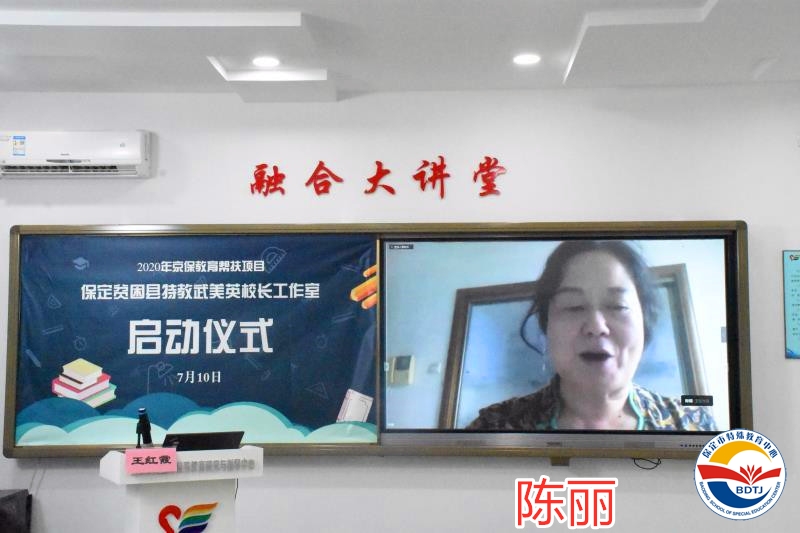 由于疫情影響,2020年7月10日上午,保定市貧困縣特教“武美英校長(zhǎng)工作室”項(xiàng)目啟動(dòng)儀式通過視頻會(huì)議舉行。該項(xiàng)目借助京保協(xié)同發(fā)展的東風(fēng),于今日正式拉開序幕。出席啟動(dòng)儀式的有:北京市教委扶貧協(xié)作與支援合作處調(diào)研員賀捷、北京市海淀區(qū)委教育工作委員會(huì)副書記屠永永、保定市教育局副局長(zhǎng)趙建民、保定市教育局對(duì)接辦主任趙聚輝、北京師范大學(xué)教育學(xué)部融合教育中心主任鄧猛、北京教育學(xué)院高級(jí)研修中心主任陳麗、北京市健翔學(xué)校校長(zhǎng)于文、保定市特殊教育中心校長(zhǎng)武美英工作室全體成員及其班子成員與保定市8個(gè)貧困縣教體局主管局長(zhǎng)及科股長(zhǎng)。儀式由北京市海淀區(qū)特殊教育研究與指導(dǎo)中心主任王紅霞主持。