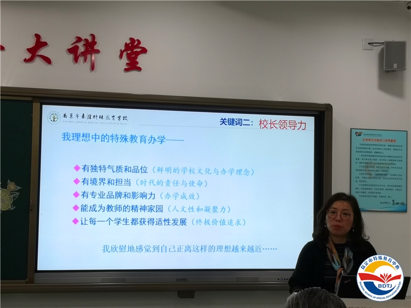 特殊教育學(xué)校發(fā)展研討會(huì)上,北京市盲人學(xué)校黨委書(shū)記張松巖分享了《視障教育的探索》,為校長(zhǎng)們講解了北京盲校的歷史沿革與現(xiàn)狀,介紹了學(xué)校探索教學(xué)的途徑,學(xué)校的發(fā)展與思索。江西省贛縣區(qū)特殊教育學(xué)校校長(zhǎng)賴(lài)慧梅,帶領(lǐng)校長(zhǎng)們領(lǐng)略贛縣區(qū)特殊教育學(xué)校的“和美”文化,在和美文化的浸潤(rùn)下,形成的“特別能吃苦、特別有愛(ài)心、特別肯鉆研、特別敢創(chuàng)新”的特教精神。南京秦淮特殊教育學(xué)校校長(zhǎng)張慧,以“明”為主體的“明知文化”分享自己的經(jīng)驗(yàn),帶領(lǐng)我們重新審視特殊教育中職業(yè)教育的課程,給我們以深刻的指導(dǎo)。這一場(chǎng)傾情分享,凝聚了三位校長(zhǎng)的智慧。三位校長(zhǎng)無(wú)私的傳遞了幾十年的經(jīng)驗(yàn),為武美英校長(zhǎng)工作室成員校的校長(zhǎng)及赤城縣特殊教育的校長(zhǎng)及教師呈現(xiàn)了一場(chǎng)精彩絕倫的視聽(tīng)盛宴!