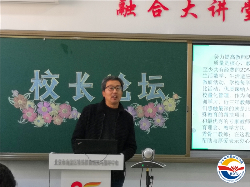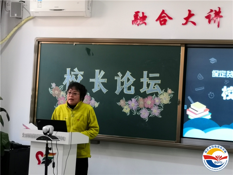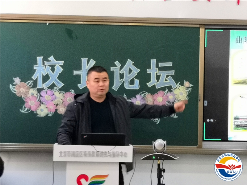 曲陽縣特殊教育中心楊志軍校長做了《快樂生活健康成長》為主題的辦學(xué)思想?yún)R報(bào)。