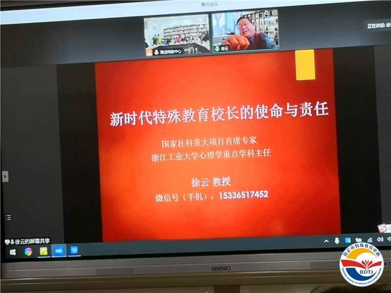 浙江工業(yè)大學(xué)徐云教授為大家?guī)砹恕缎聲r(shí)代下特殊教育學(xué)校校長的使命與責(zé)任》為主題的培訓(xùn)。他指出,保定市貧困縣特教武美英校長工作室的成立,最大程度的體現(xiàn)了社會(huì)主義優(yōu)越性。他從中國特殊教育的發(fā)展及現(xiàn)狀出發(fā),闡釋了新時(shí)代下、現(xiàn)代化特殊教育學(xué)校校長的使命,學(xué)校課程建設(shè)、教師隊(duì)伍培養(yǎng)為主要特征和關(guān)鍵職責(zé)。并且希望工作室成員校的校長們深刻思考學(xué)校的發(fā)展方向,在建設(shè)學(xué)校的過程中真正做到"新理念、新格局、新階段”!