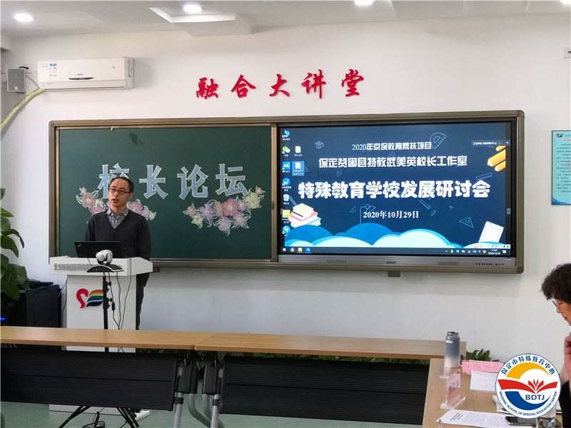 保定市貧困縣特教武美英校長工作室第二期校長論壇如約而來,10月30日,在北京海淀區(qū)特殊教育研究與指導(dǎo)中心,淶源縣特殊教育中心校長鄧紅艷、曲陽縣特殊教育中心校長楊志軍、順平縣特教學(xué)校校長齊建偉、阜平縣特教學(xué)校王校長闡述了學(xué)校辦學(xué)思想。