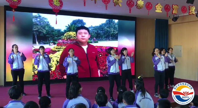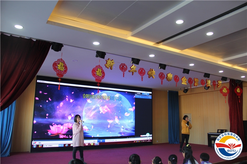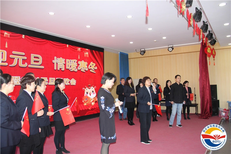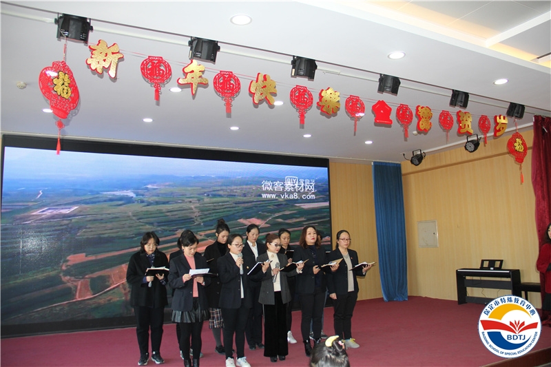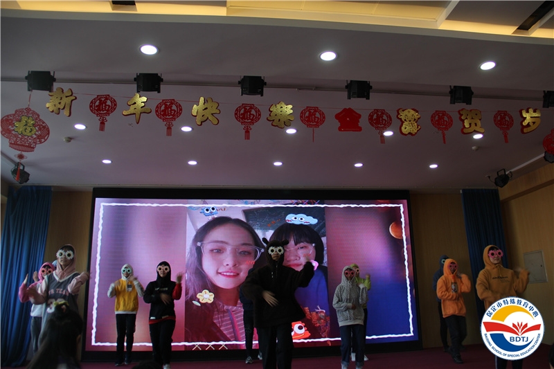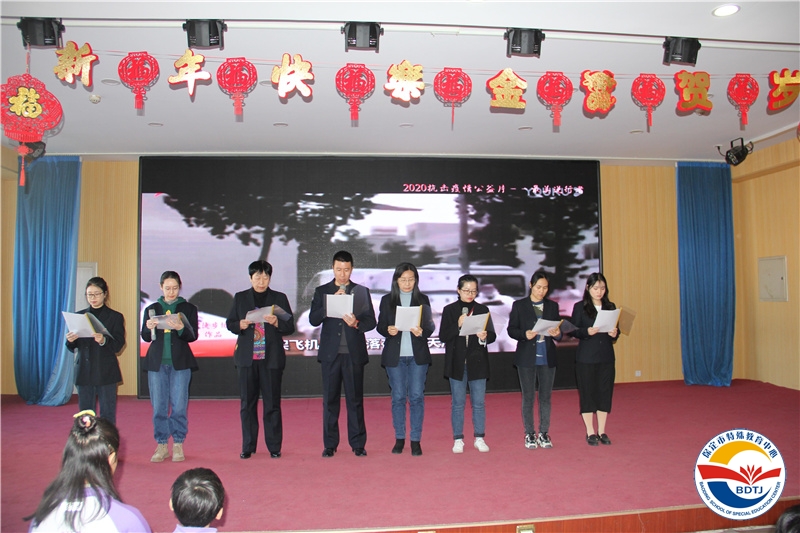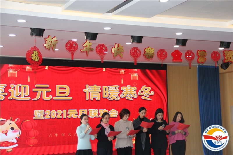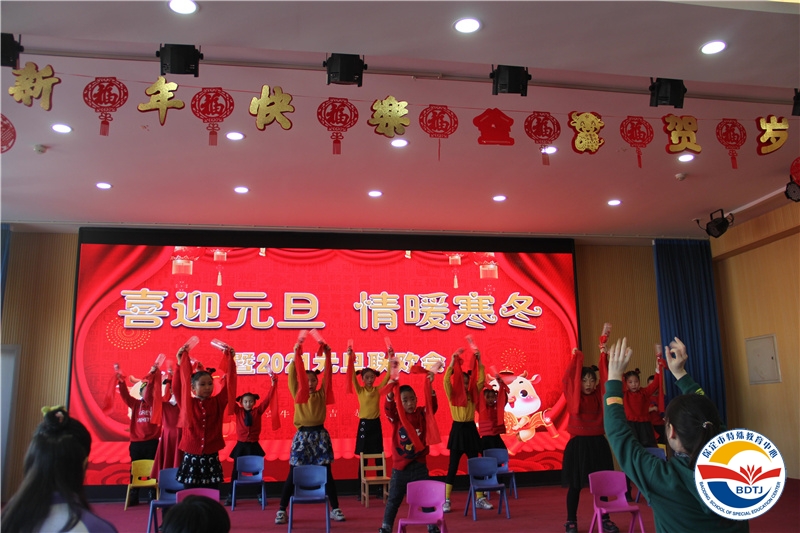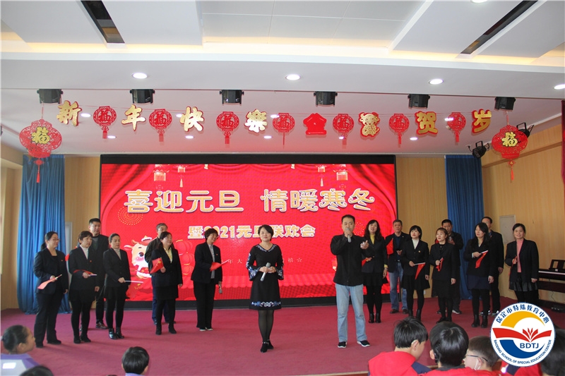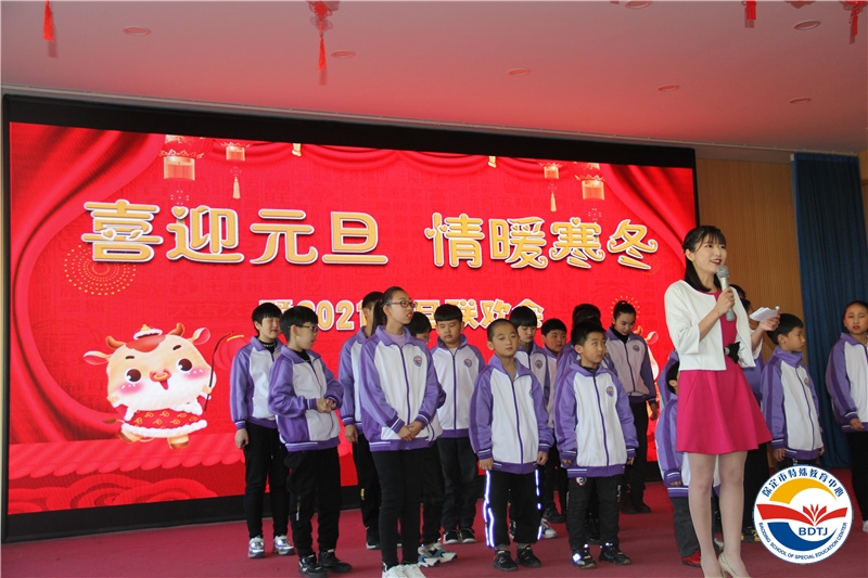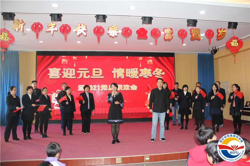武美英校長、周建忠副校長、曹挺副校長,滿紅宇副校長、趙娜主席、全體教職工、啟聰部和啟明部學(xué)生歡聚一堂,在喜慶祥和的氛圍中共慶2021年的到來。