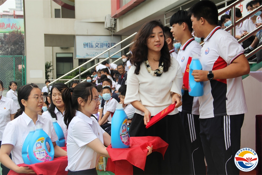 在全體師生的歡呼和掌聲中,開學(xué)典禮落下帷幕。“擁抱差異,珍視生命”,“特教人”正在用實際行動履行讓家長放心、讓社會滿意的誓言!一年來,學(xué)校被評為“全面提高教育教學(xué)質(zhì)量先進(jìn)單位”, 6月聾人足球隊代表河北省參加全國第十一屆殘疾人運動會獲得亞軍! 7月,學(xué)校靈動啦啦操隊榮獲全國啦啦操聯(lián)賽(保定站)公開賽殘障集體花球自選動作第一名!學(xué)校掛牌“北京聯(lián)合大學(xué)特殊教育學(xué)院研究生實踐基地”、“保定市殘疾人體育訓(xùn)練基地”。
