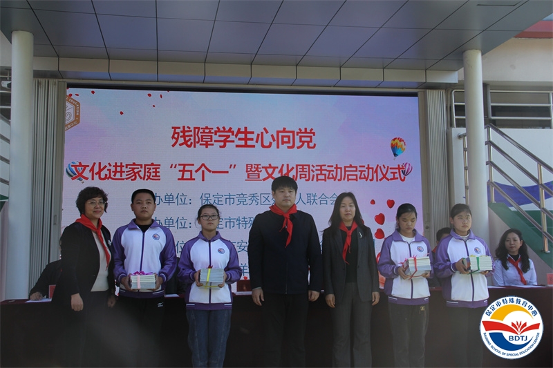 啟動(dòng)儀式上,武美英校長(zhǎng)致歡迎詞,對(duì)各位領(lǐng)導(dǎo)以及捐贈(zèng)企業(yè)表示衷心的感謝,競(jìng)秀區(qū)殘聯(lián)為保定特教中心殘障學(xué)生現(xiàn)場(chǎng)進(jìn)行了第一場(chǎng)捐書(shū)活動(dòng),為“五個(gè)一”系列文化活動(dòng)拉開(kāi)序幕。