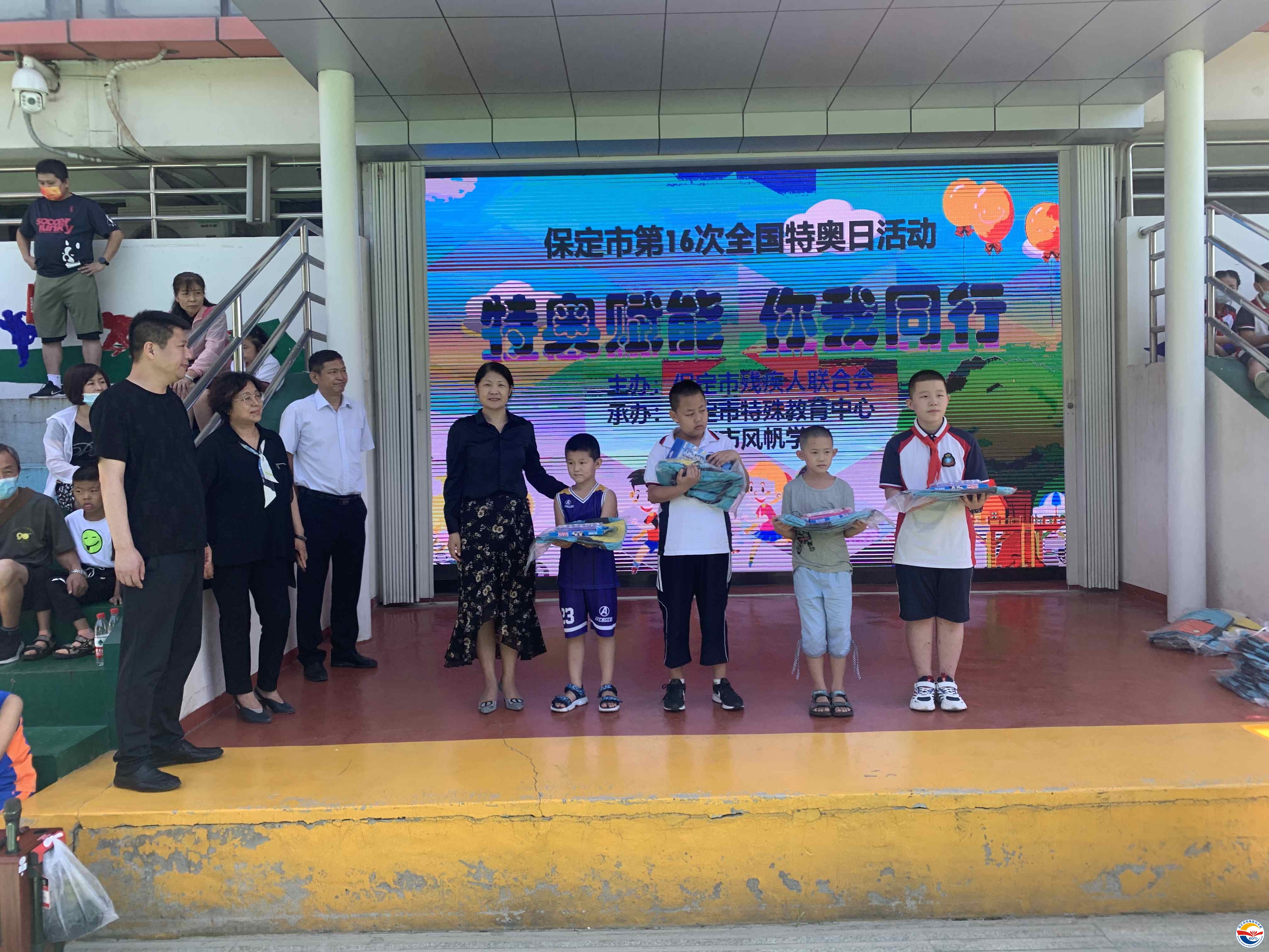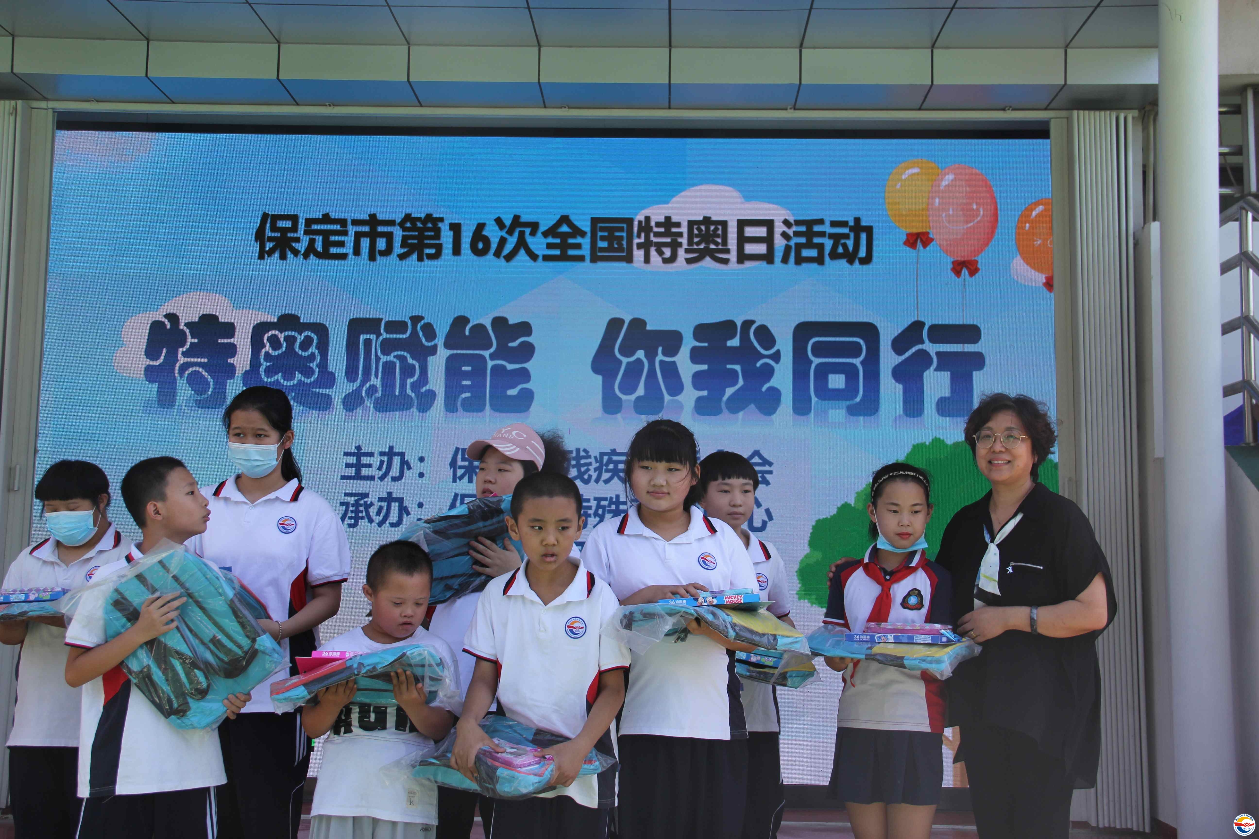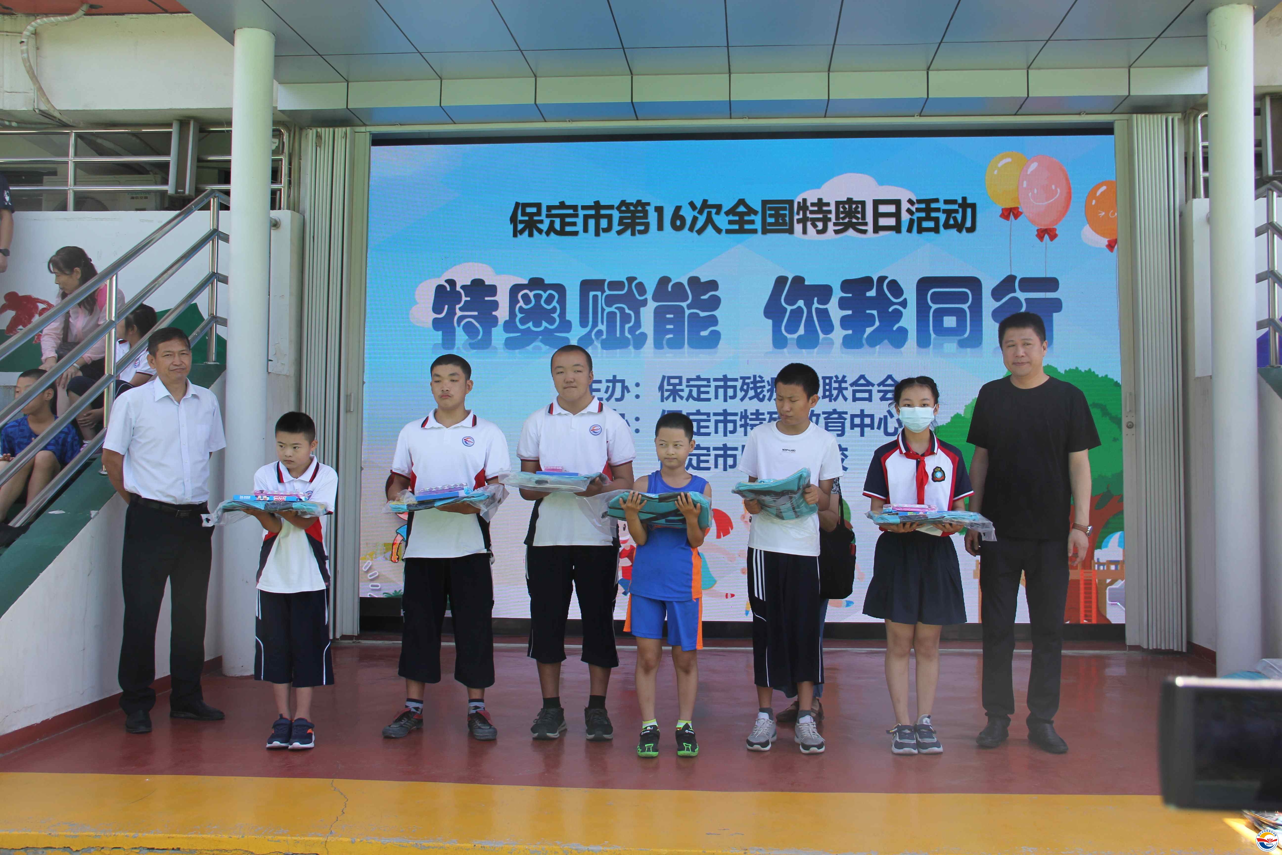 保定市特殊教育中心校長(zhǎng)武美英致歡迎詞,感謝保定市殘聯(lián)及社會(huì)各界對(duì)殘疾人事業(yè)的支持。保定市殘聯(lián)副理事長(zhǎng)張海寧發(fā)表重要講話(huà),他呼吁全社會(huì)廣泛傳播“平等、接納、包容”的理念,鼓勵(lì)學(xué)生們充分發(fā)揚(yáng)“你行,我也行”的精神風(fēng)貌,使他們更好的融入社會(huì),并宣布第16次特奧日活動(dòng)正式開(kāi)幕。隨后學(xué)校師生表演了精彩的節(jié)目,贏得了陣陣熱烈掌聲。開(kāi)幕式結(jié)束后在學(xué)校操場(chǎng)進(jìn)行特奧日運(yùn)動(dòng)會(huì)活動(dòng),本次活動(dòng)共有五個(gè)項(xiàng)目:毛毛蟲(chóng)競(jìng)速、足球射門(mén)、沙包投籃、拍球比多、背靠背夾球。比賽中,學(xué)生及其家長(zhǎng)和融合隊(duì)員齊心協(xié)力、奮勇?tīng)?zhēng)先,現(xiàn)場(chǎng)歡呼聲此起彼伏。中午同學(xué)們吃著愛(ài)心午餐,臉上洋溢著幸福的笑容。