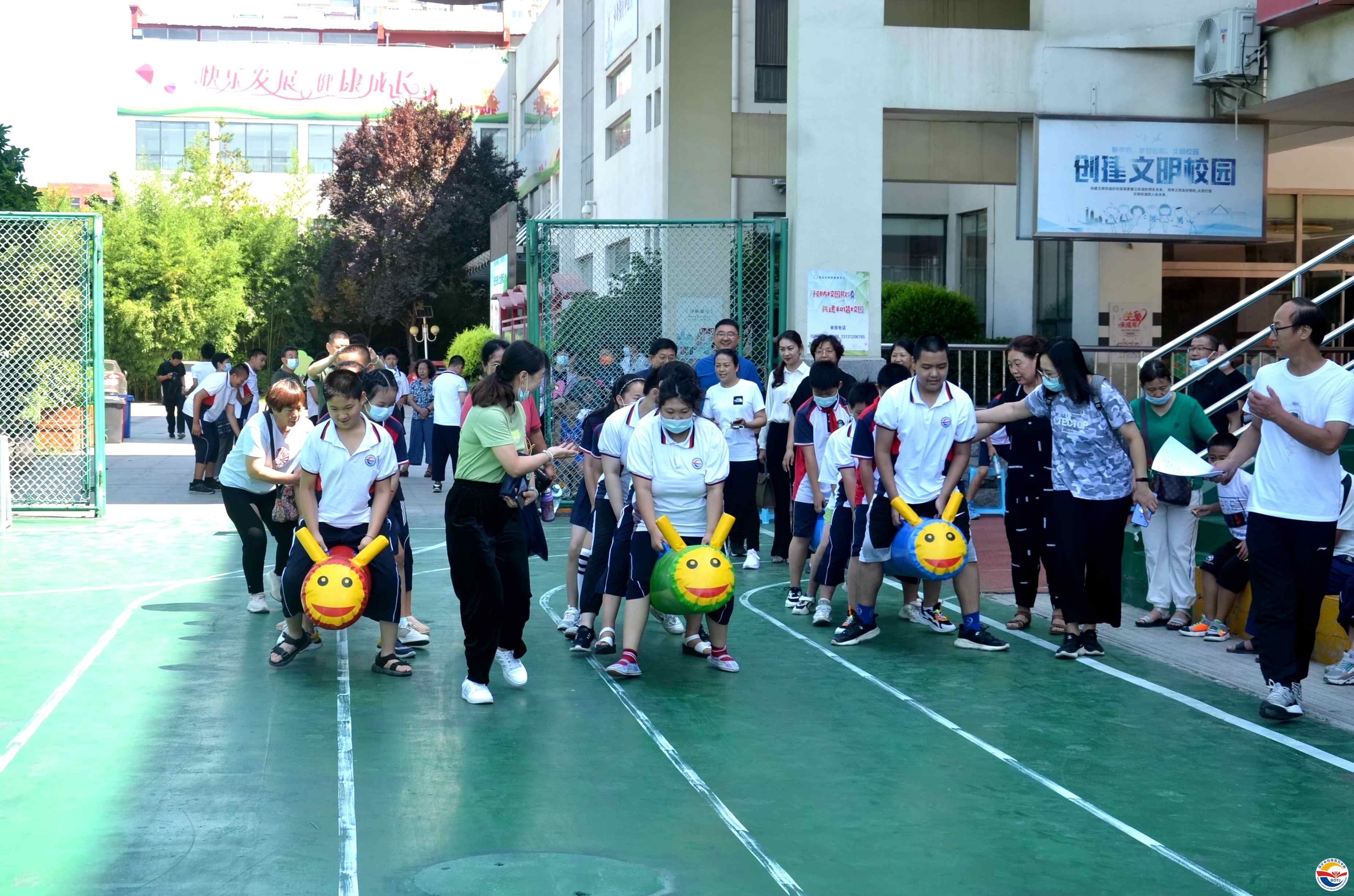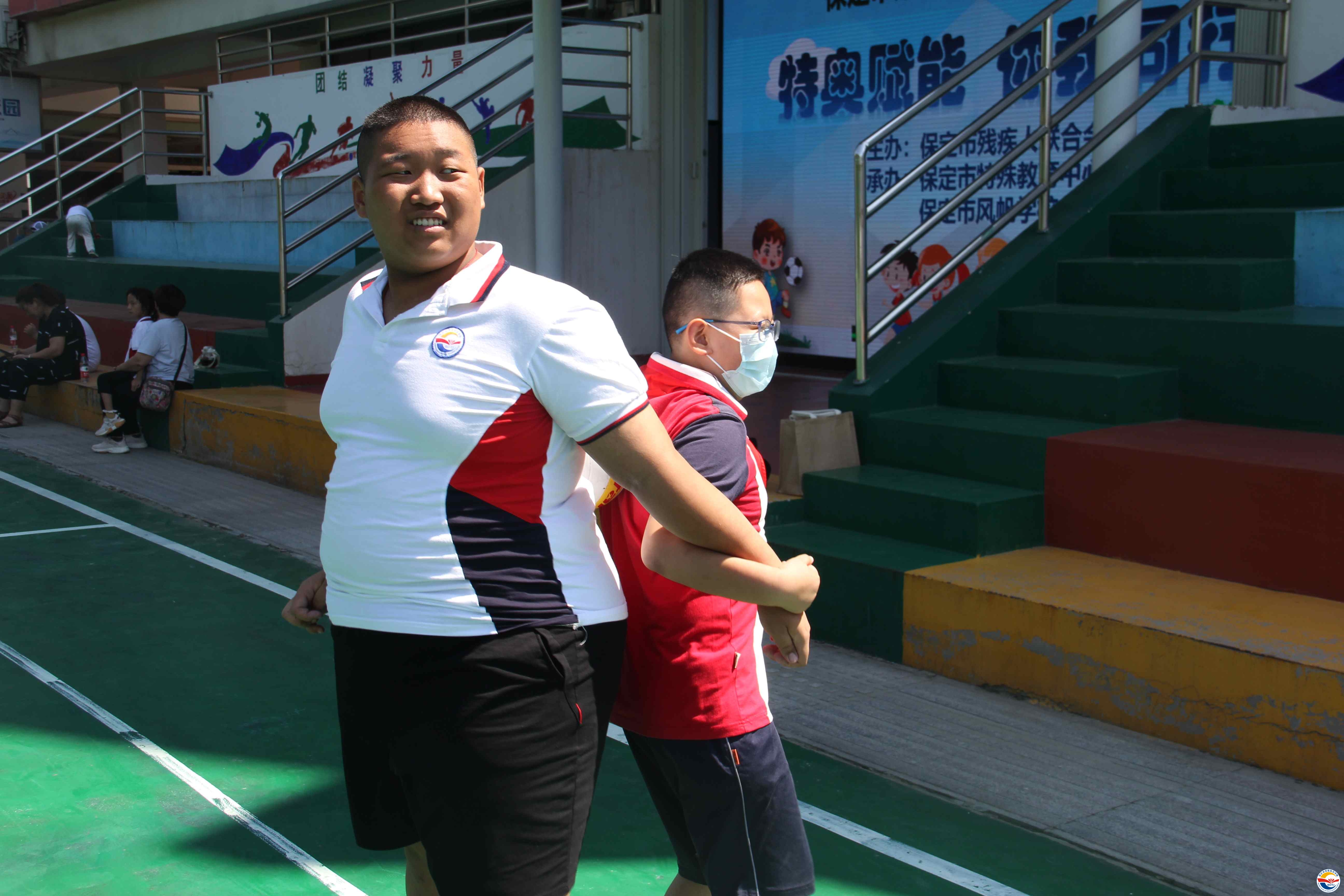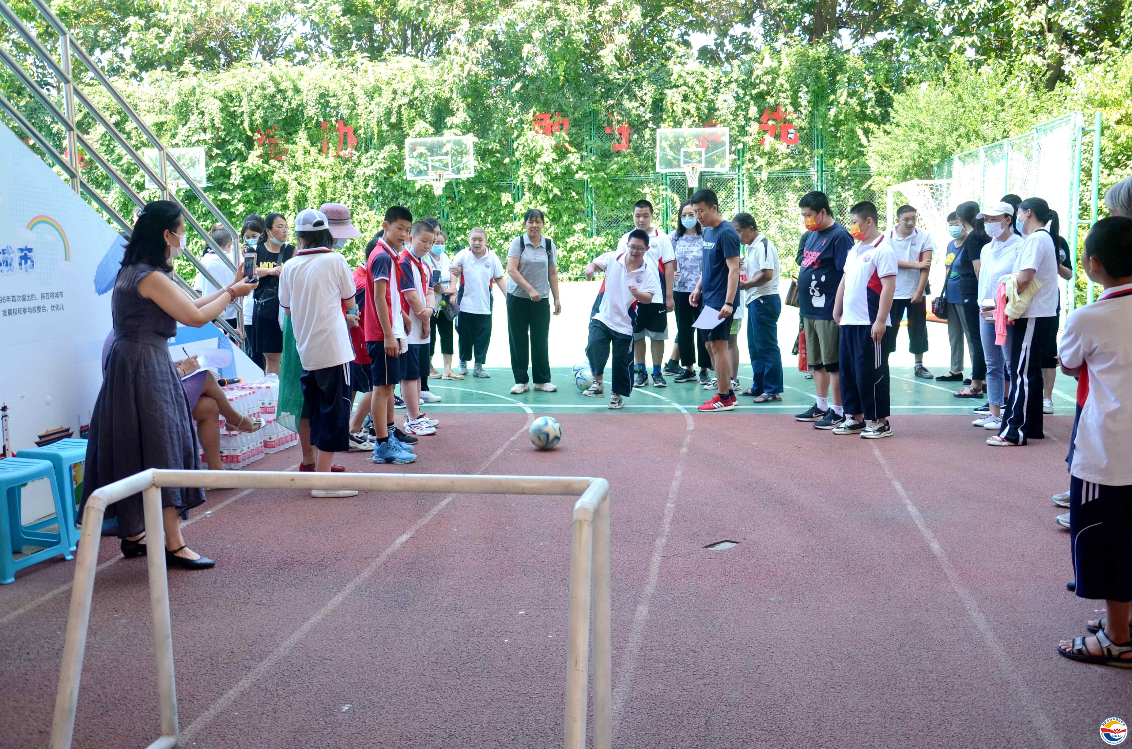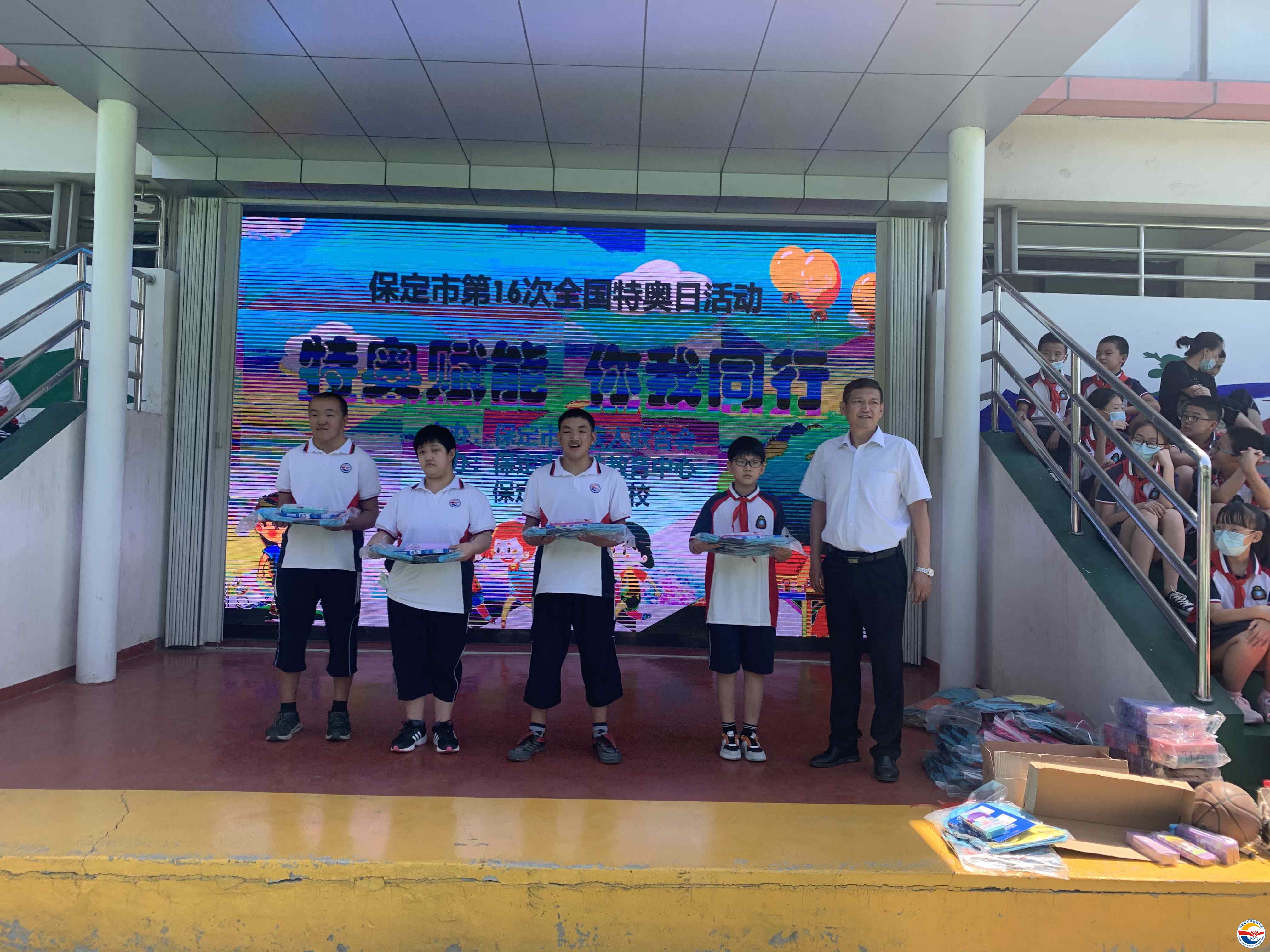 保定市特殊教育中心校長(zhǎng)武美英致歡迎詞,感謝保定市殘聯(lián)及社會(huì)各界對(duì)殘疾人事業(yè)的支持。保定市殘聯(lián)副理事長(zhǎng)張海寧發(fā)表重要講話(huà),他呼吁全社會(huì)廣泛傳播“平等、接納、包容”的理念,鼓勵(lì)學(xué)生們充分發(fā)揚(yáng)“你行,我也行”的精神風(fēng)貌,使他們更好的融入社會(huì),并宣布第16次特奧日活動(dòng)正式開(kāi)幕。隨后學(xué)校師生表演了精彩的節(jié)目,贏得了陣陣熱烈掌聲。開(kāi)幕式結(jié)束后在學(xué)校操場(chǎng)進(jìn)行特奧日運(yùn)動(dòng)會(huì)活動(dòng),本次活動(dòng)共有五個(gè)項(xiàng)目:毛毛蟲(chóng)競(jìng)速、足球射門(mén)、沙包投籃、拍球比多、背靠背夾球。比賽中,學(xué)生及其家長(zhǎng)和融合隊(duì)員齊心協(xié)力、奮勇?tīng)?zhēng)先,現(xiàn)場(chǎng)歡呼聲此起彼伏。中午同學(xué)們吃著愛(ài)心午餐,臉上洋溢著幸福的笑容。