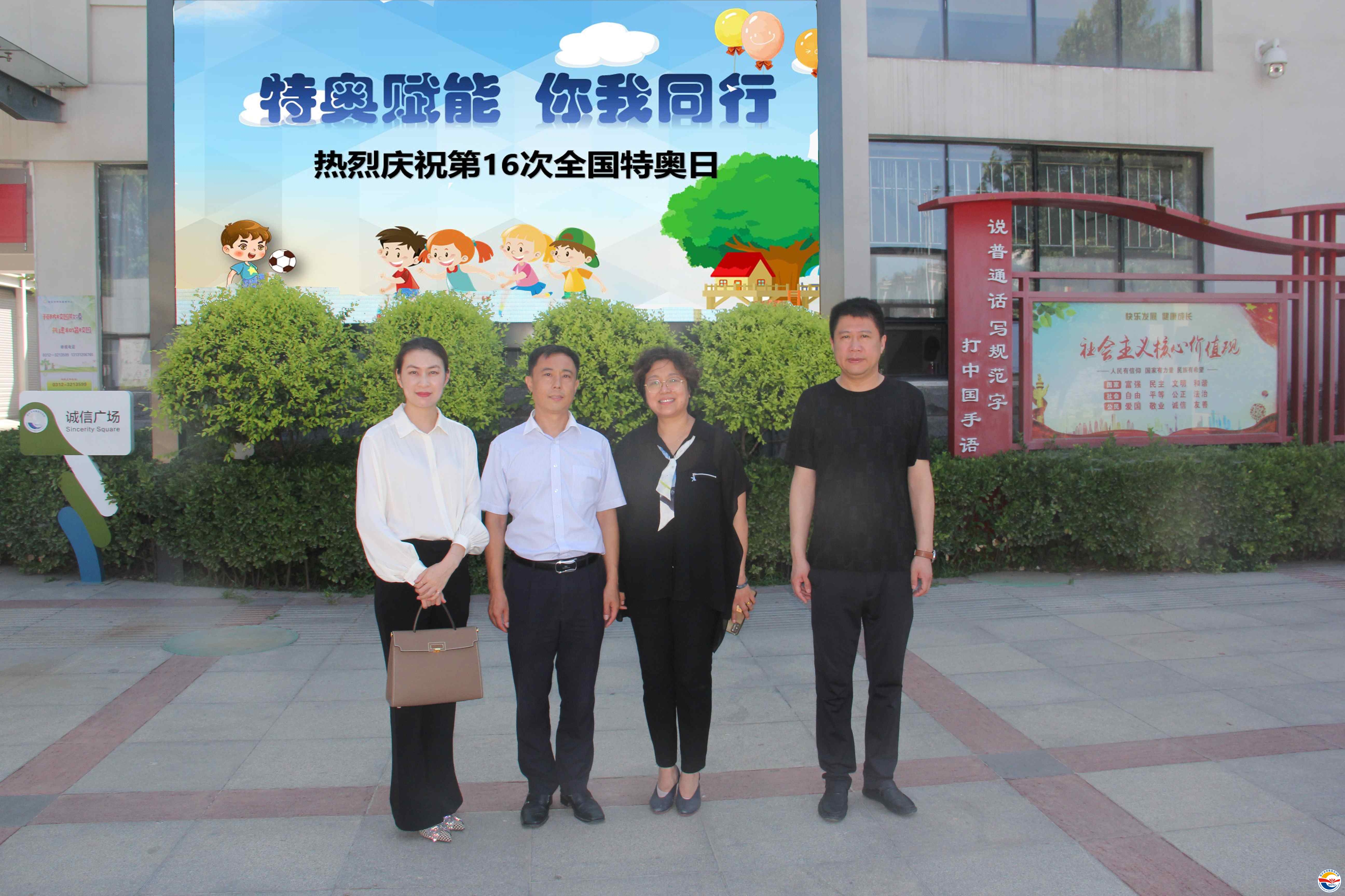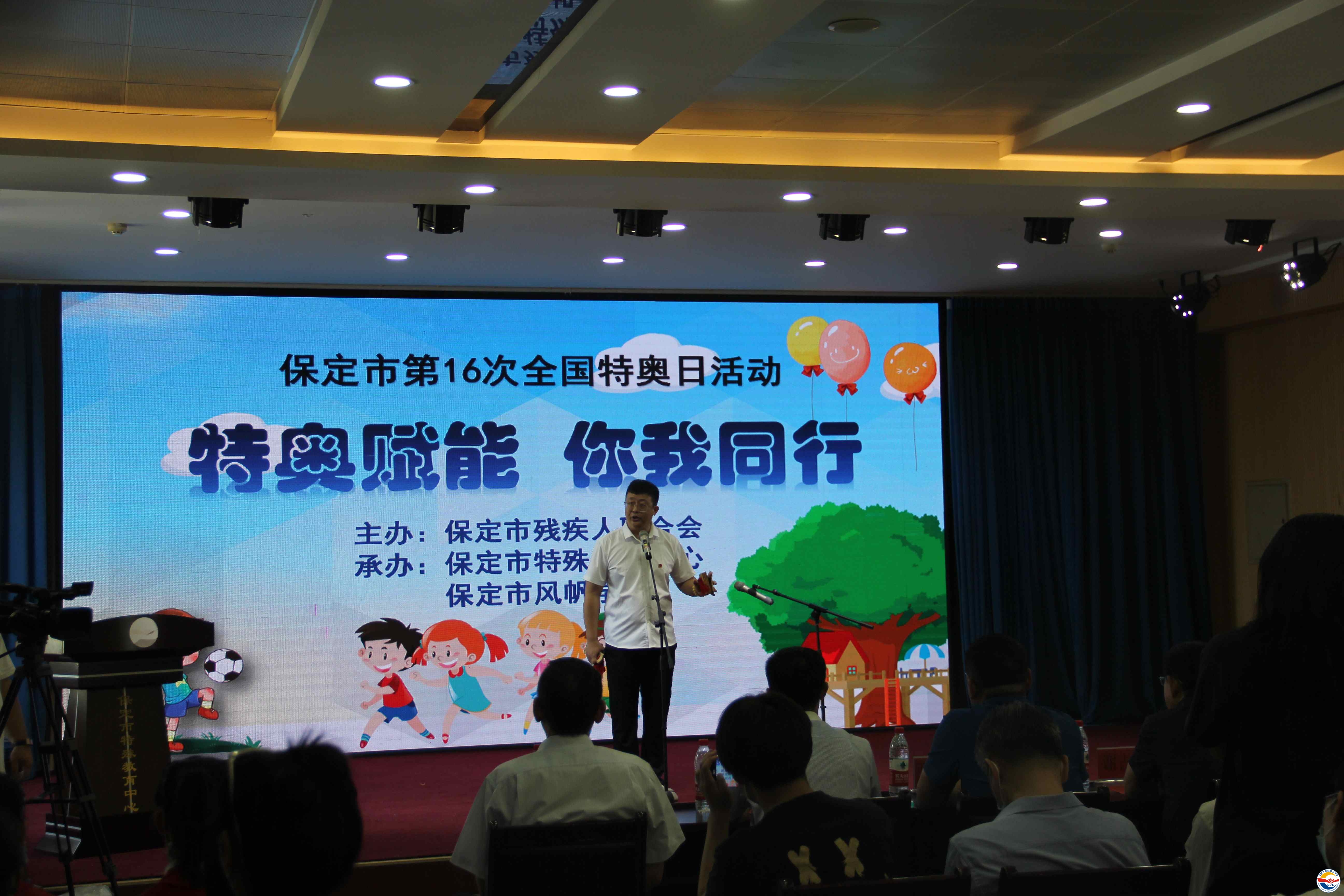 2022年7月20日是第十六次全國(guó)特奧 日,為在全社會(huì)廣泛傳播特奧“平等、接納、包容”的理念,增強(qiáng)社會(huì)大眾尊重、關(guān)愛(ài)、幫助殘疾人的意識(shí),為殘疾人工作和發(fā)展殘疾人事業(yè)營(yíng)造了良好的社會(huì)氛圍,7月20日上午,由保定市殘聯(lián) 主辦,保定市特殊教育中心、保定市風(fēng)帆學(xué)校承辦的“特奧賦能 你我同行”為主題的保定市特奧日活動(dòng)在保定市特殊教育中心舉行。參加本次活動(dòng)的有保定市殘疾人聯(lián)合會(huì)黨組書(shū)記、理事長(zhǎng)謝占斌,副理事長(zhǎng)張海寧,保定市風(fēng)帆學(xué)校副校長(zhǎng)賈君梅,河北銀行保定分行營(yíng)業(yè)部副總經(jīng)理王海軍、經(jīng)理杜海霞,保定市特殊教育中心黨支部書(shū)記、校長(zhǎng)武美英,黨支部副書(shū)記滿(mǎn)紅宇,副校長(zhǎng)裴莫非、劉雅楠。參加本次特奧活動(dòng)的還有來(lái)自保定市風(fēng)帆學(xué)校的融合隊(duì)員、廣大愛(ài)心人士和保定市特教中心的培智學(xué)生。