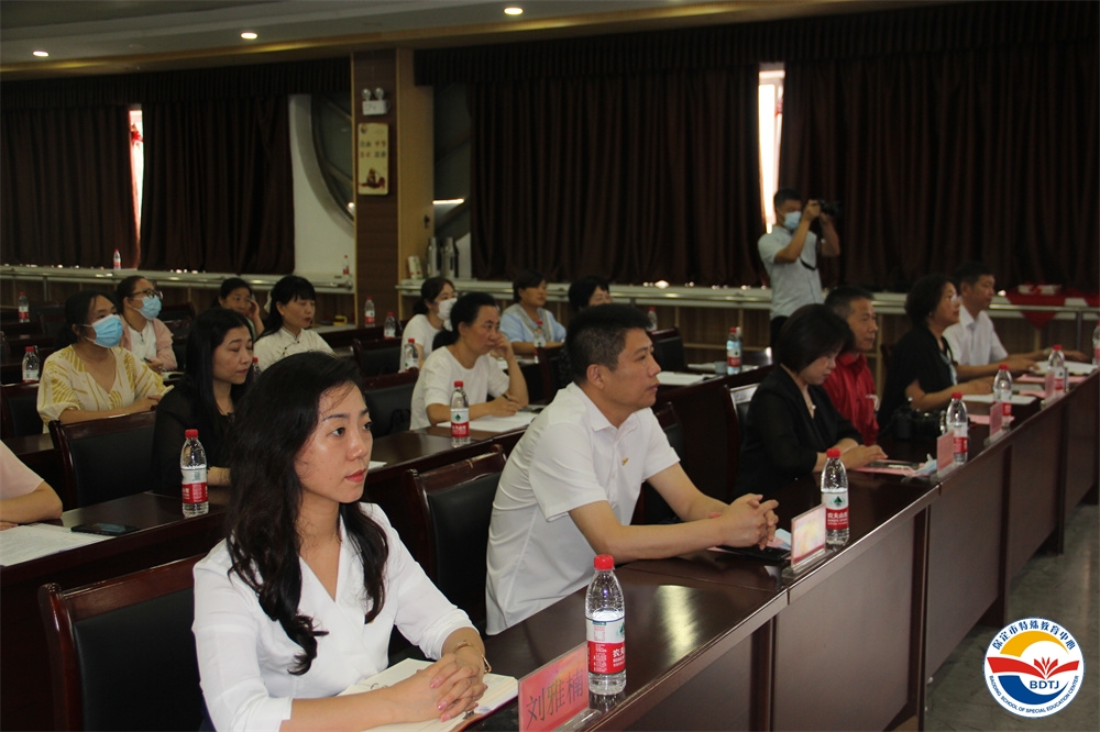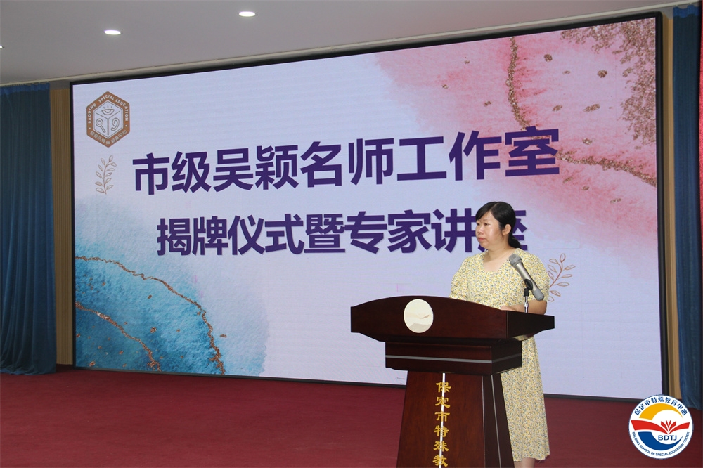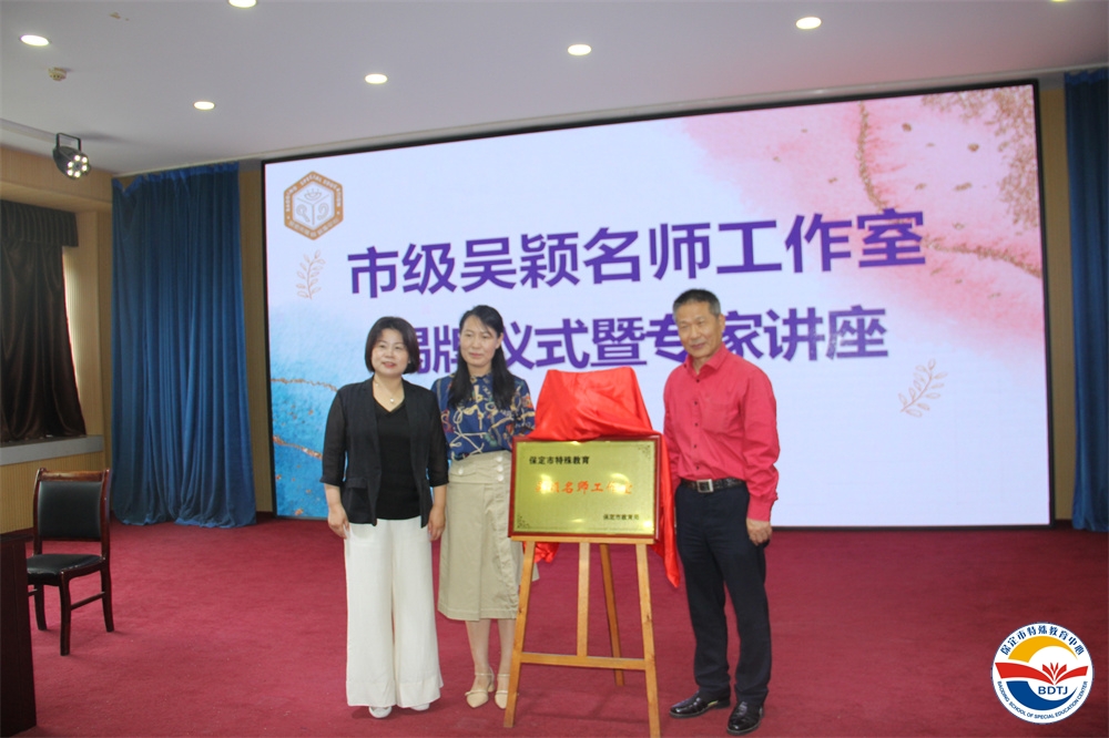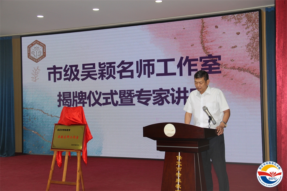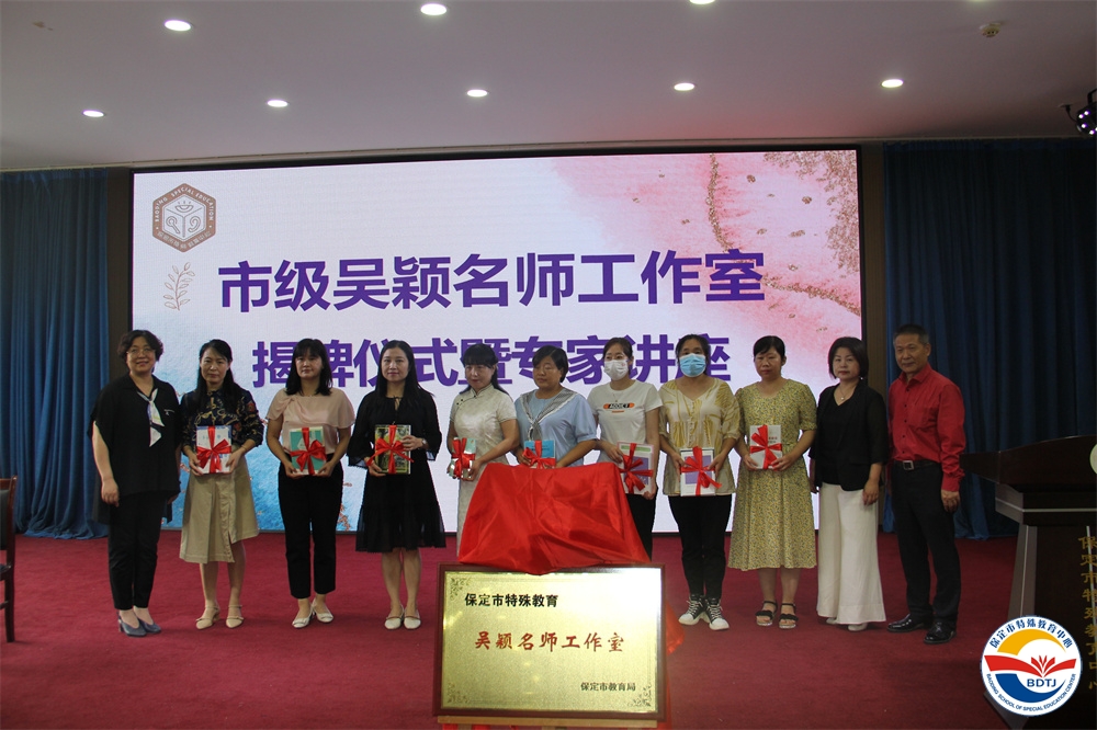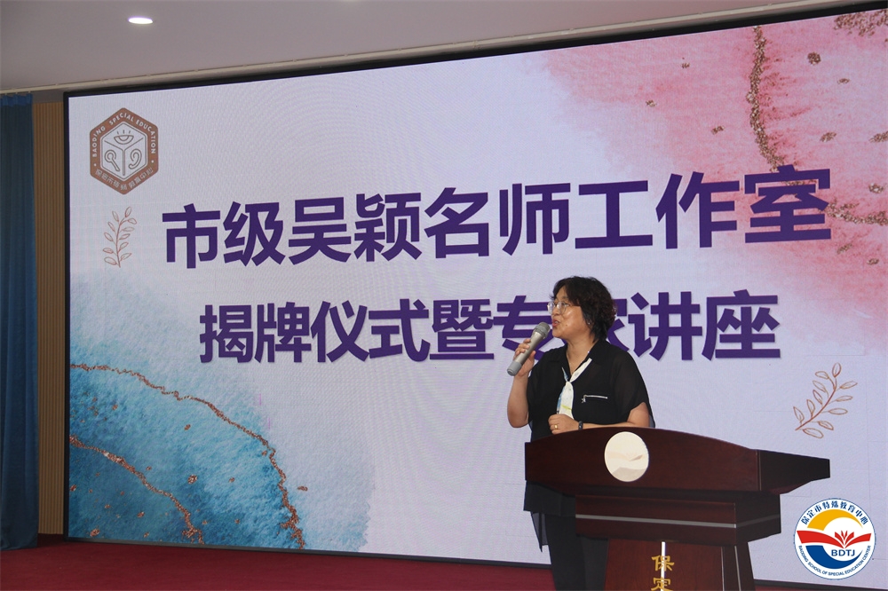 為了貫徹落實(shí)市委、市政府“1530"工程,推進(jìn)保定市特殊教育教學(xué)發(fā)展改革,根據(jù)名師工作室建設(shè)的指導(dǎo)意見(jiàn),8月23日上午,在保定市特殊教育中心舉行吳穎名師工作室揭牌儀式暨研修活動(dòng)。參加本次活動(dòng)的的領(lǐng)導(dǎo)和專家有:保定市教育局吳桂蘭副處長(zhǎng)、北京聯(lián)合大學(xué)劉全禮教授、北京海淀區(qū)特殊教育研究與指導(dǎo)中心王紅霞主任、保定市特殊教育中心武美英校長(zhǎng)、副校長(zhǎng)滿紅宇、裴莫非、劉雅楠,武美英校長(zhǎng)工作室及吳穎名師工作室成員。