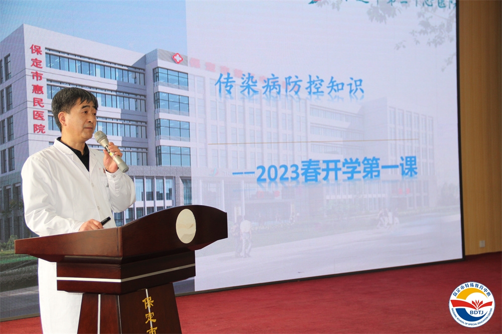 春暖花開日,快樂開學(xué)時。為進一步加強春季傳染病的預(yù)防工作,應(yīng)對新冠病毒感染“乙類乙管”政策新的優(yōu)化調(diào)整,確保全校師生身心健康。2023年2月15日下午,保定市特殊教育中心邀請保定市第三中心醫(yī)院副院長付剛、保定市特殊教育中心健康副校長、第三中心醫(yī)院副院長諶杰宇及相關(guān)處室專家,與全校師生共同開啟了“開學(xué)健康第一課”。