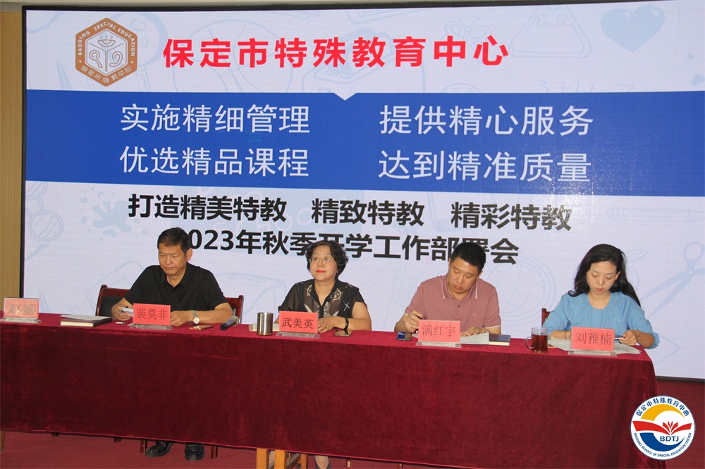 為進一步明確新學(xué)期工作目標與任務(wù),理清工作思路,部署開學(xué)各項準備工作,確保新學(xué)期工作有條不紊開展,8月31日上午,保定市特殊教育中心2023年秋學(xué)期開學(xué)全體教工會在三樓多功能廳召開。主題為“實施精細化管理 提供精心服務(wù) 優(yōu)選精品課程 實現(xiàn)精準質(zhì)量”,對新學(xué)期分管的重點工作進行安排部署。