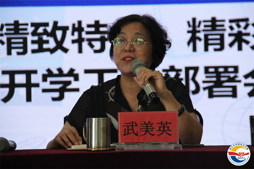 最后,武美英校長對開學(xué)籌備工作進行周密部署,對當前的形勢任務(wù)做了精準的研判分析,并從全面加強黨的領(lǐng)導(dǎo)、抓好下半年黨建工作、不斷提升教學(xué)成績、繼續(xù)提高宣傳質(zhì)量、做好各項活動的準備工作等方面指明了努力的方向,提出了具體的工作目標,號召大家明確奮斗目標,克服困難,砥礪前行,在新學(xué)期創(chuàng)造特教發(fā)展史上的輝煌!