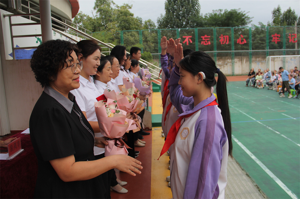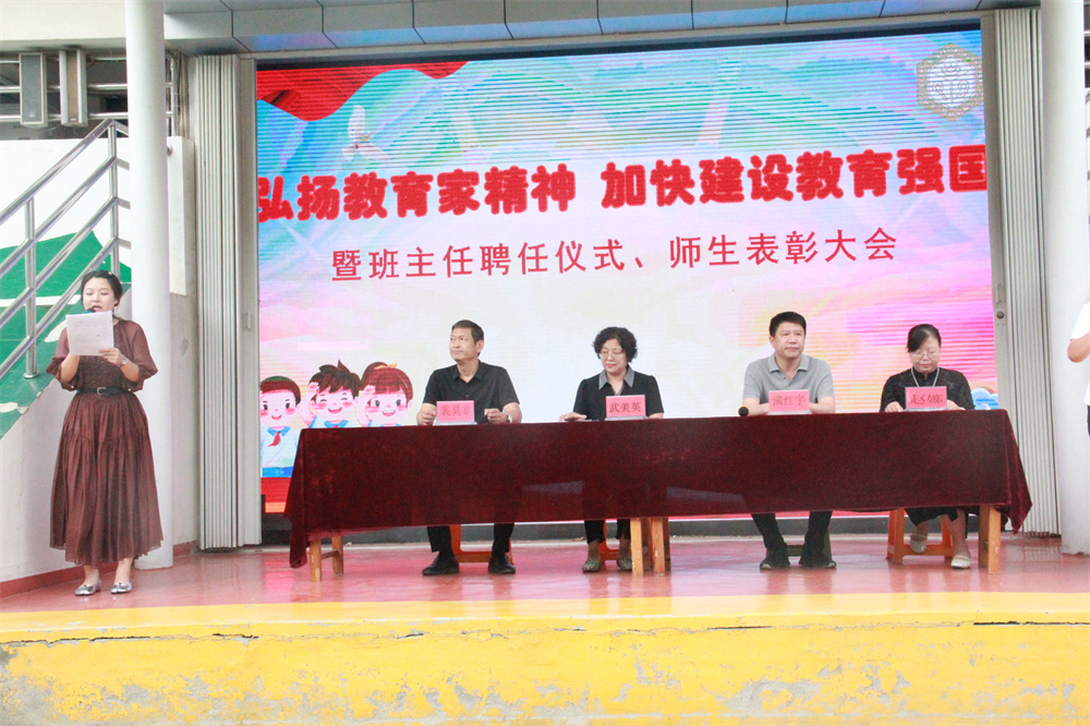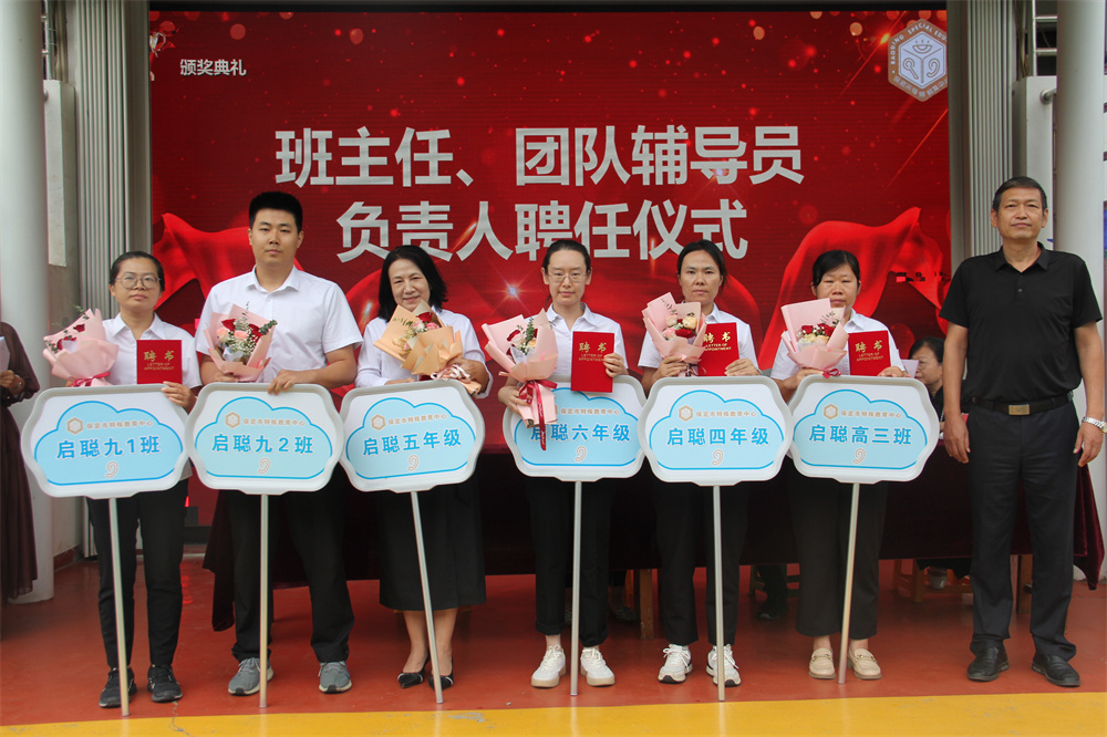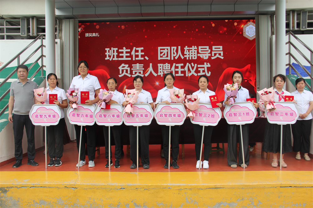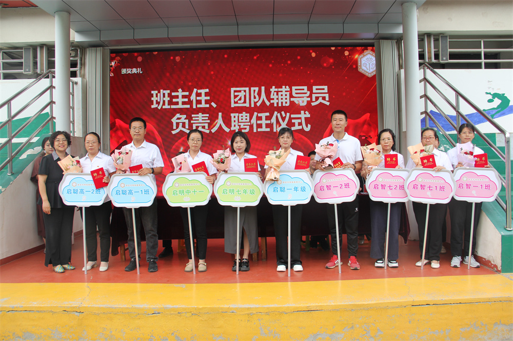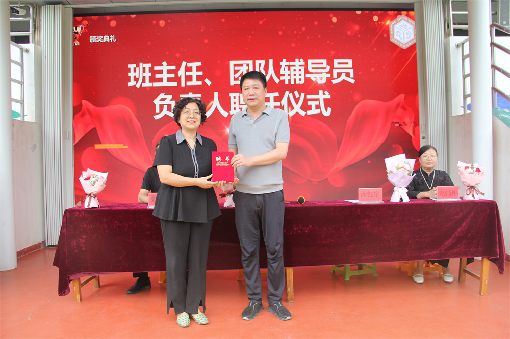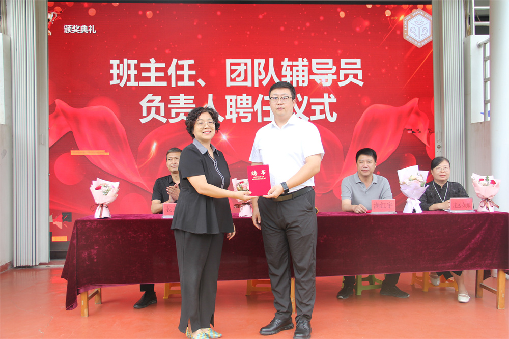 武校長為起始年級班主任授班牌并頒發(fā)聘書。