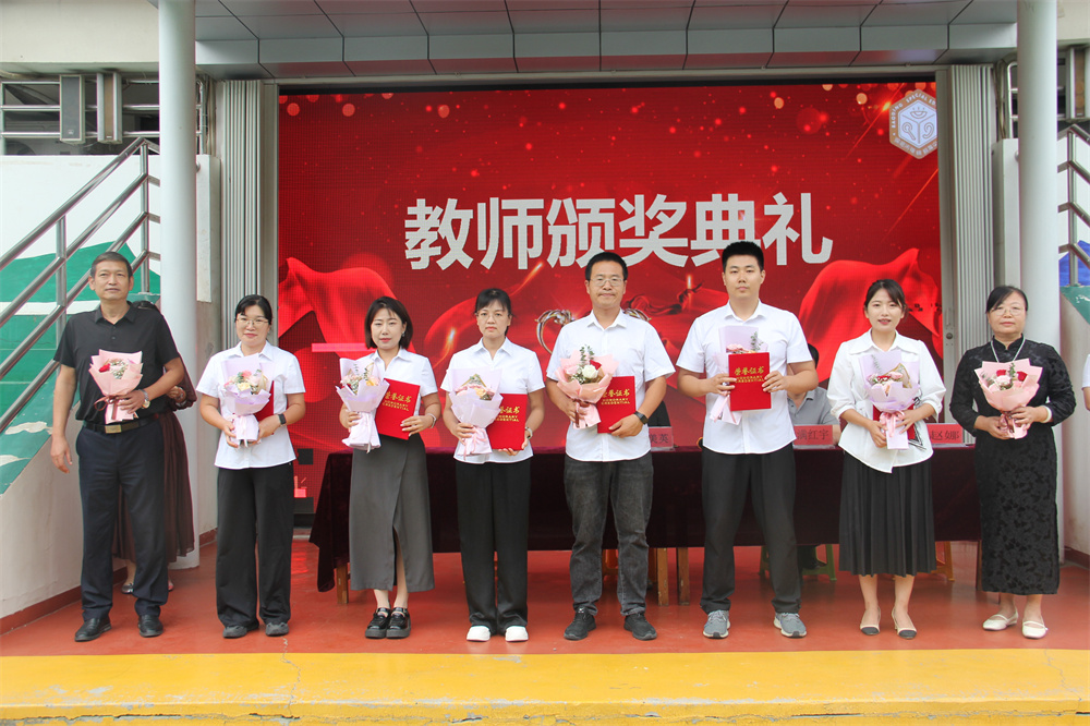 校領(lǐng)導(dǎo)分別為獲獎教師頒獎。
