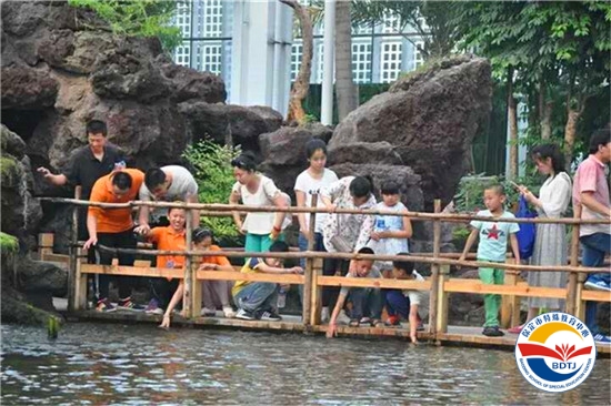 啟聰部的同學(xué)們歡呼雀躍,看到美景就趕緊拿出手機(jī)將這一刻的美好記錄下來;啟明部的同學(xué)們在老師的帶領(lǐng)下靜靜地聽著水流聲,小手伸進(jìn)水中,感受著清水和綠植帶給他們的一抹清涼;再看看啟智部的同學(xué)們,一手牽著媽媽一手牽著老師,頑皮地笑著、跳著,感受著愛與自然的美好......