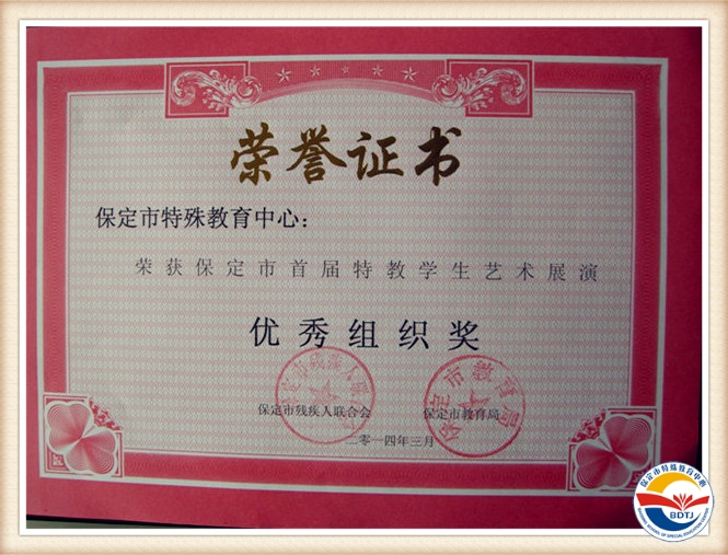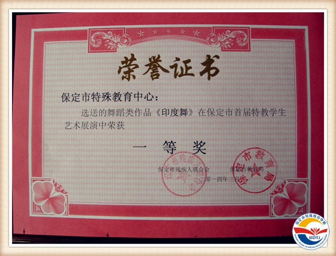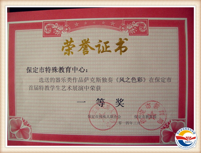 為了促進特殊教育藝術(shù)水平的發(fā)展,市殘聯(lián)和市教育局舉辦了首屆特教學生藝術(shù)展演出,我校啟聰部學生的《印度舞》、啟明部學生的薩克斯獨奏《風之色彩》均獲一等獎,車克 、楊柳、鄧芳芳獲優(yōu)秀指導(dǎo)教師獎,我校獲得優(yōu)秀組織獎。
