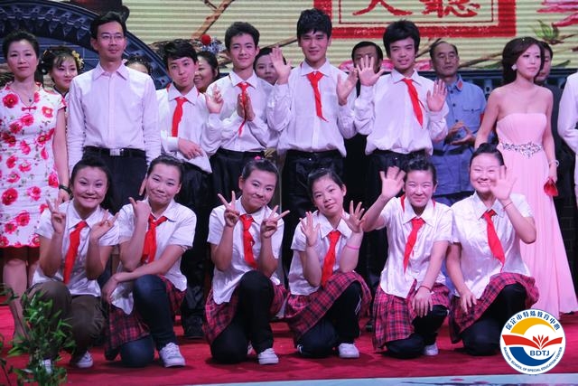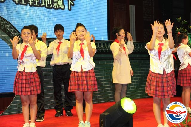 晚會內(nèi)容遴選了中華經(jīng)典名篇,配以唯美天籟音效,現(xiàn)場舞蹈、歌曲、鋼琴、小提琴、古箏、笛子等精彩助興,屏幕背景美輪美奐,而最令人心動,且感人至深的當屬我校的手語節(jié)目《我一定會聽見》和盲生劉文蕊同學(xué)演唱的歌曲《最好的未來》,臺下的觀眾被這些 “用手語舞蹈”的花季少年折服,感動。在舞臺上,孩子們陽光、自信、向上的精神、用頑強的毅力向在場觀眾詮釋著:我們一定能行!我們一定能聽到!