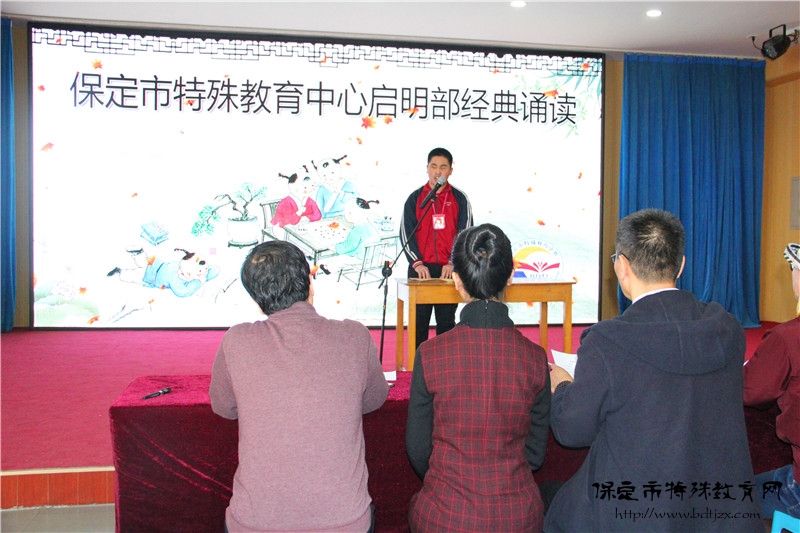 接下來(lái),董麗娜及視障文化服務(wù)中心王偉力等老師來(lái)到學(xué)校三樓多功能廳,為正在開(kāi)展的“保定市特殊教育中心啟明部經(jīng)典誦讀”比賽當(dāng)評(píng)委,學(xué)生們備受鼓舞。同學(xué)們經(jīng)典誦讀的內(nèi)容既有我國(guó)傳統(tǒng)的古典詩(shī)詞,也有近現(xiàn)代的優(yōu)美散文;既有贊嘆祖國(guó)壯麗山河的篇章,也有說(shuō)明哲理的句段。學(xué)生們?cè)谡b讀中個(gè)個(gè)精神飽滿,聲情并茂。賽后,老師們對(duì)同學(xué)們的精彩表現(xiàn)給予高度評(píng)價(jià),同時(shí)從專業(yè)角度做出中肯的評(píng)價(jià)和建議。通過(guò)經(jīng)典誦讀,能夠培養(yǎng)視障學(xué)生的閱讀習(xí)慣,營(yíng)造書(shū)香校園,弘揚(yáng)民族文化,傳承華夏文明,啟明部學(xué)生受益匪淺。