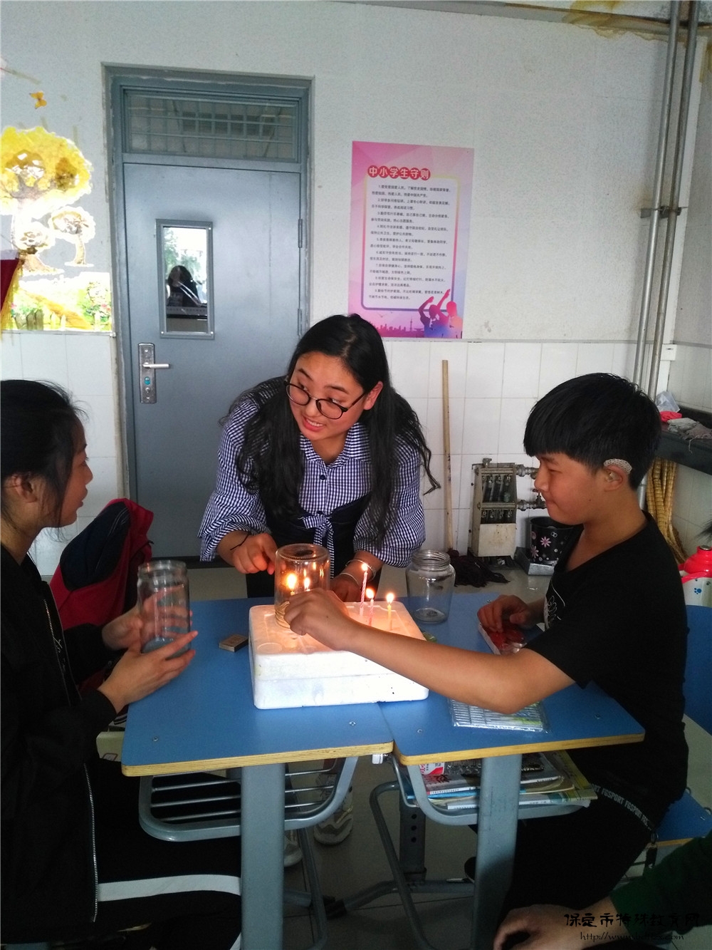 5月10日下午,來自河北農(nóng)業(yè)大學(xué)理工學(xué)院的三位老師和9名“理學(xué)微光”志愿服務(wù)團(tuán)的同學(xué)們來到保定市特殊教育中心和我校啟聰部五年級學(xué)生一起開展了有趣的科學(xué)小實驗科普活動。