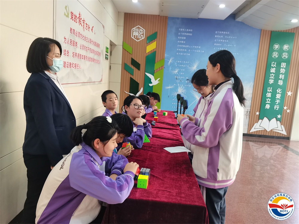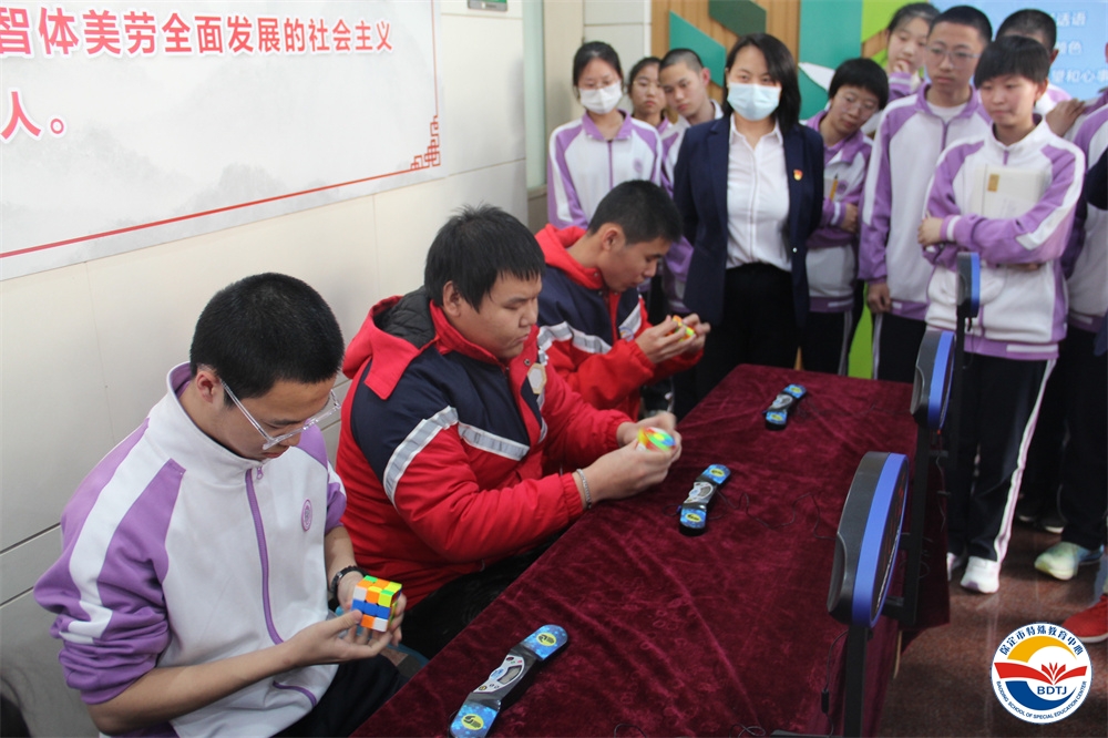 兩校的學生參與保定市特教中心的數(shù)學課、語文課、英語課、拓展課聽課活動,與殘障的孩子共同學習,感受到殘障孩子們自強自立、勇于拼搏的精神,在學習上不甘落后,在生活中樂觀向上。保定市特教中心武美英校長和兩校的孩子們進行了親切的交談,希望同學們自強不息,在學習生活中敢于直面挫折困難,通過自己的拼搏努力,實現(xiàn)自己的人生夢想!