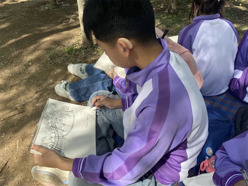 為深入貫徹習(xí)近平總書記關(guān)于在教育“雙減”中做好科學(xué)教育加法的重要指示精神,學(xué)校于4月23-24日組織啟聰部學(xué)生前往保定市生態(tài)園和大激店古鎮(zhèn)進(jìn)行為期兩天的美術(shù)寫生研學(xué)活動(dòng),加深學(xué)生對(duì)自然環(huán)境的感受能力,提高學(xué)生對(duì)自然景物的描繪、室外風(fēng)景觀察力,培養(yǎng)學(xué)生的審美能力和造型能力,同時(shí)鍛煉學(xué)生在實(shí)踐中的毅志力、吃苦精神、協(xié)作與友愛精神。