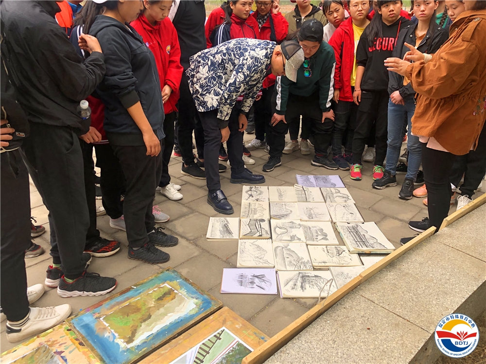 當(dāng)同學(xué)們看到博士畫(huà)家來(lái)指導(dǎo)自己寫生,激動(dòng)萬(wàn)分,紛紛拿出手中的畫(huà)筆,面對(duì)晚春時(shí)節(jié)風(fēng)景如畫(huà)的野三坡,選定獨(dú)特角度取景,嘗試用各種不同的形式手法,從不同的視角,專注而細(xì)心的描繪著。一幅幅惟妙惟肖的風(fēng)景畫(huà)就這樣誕生了。